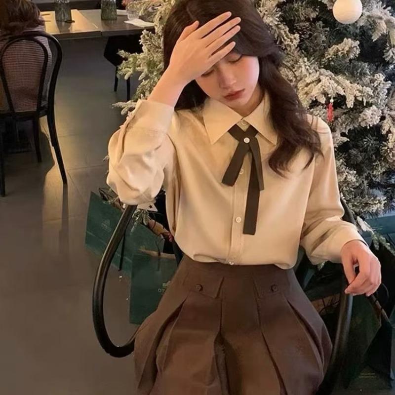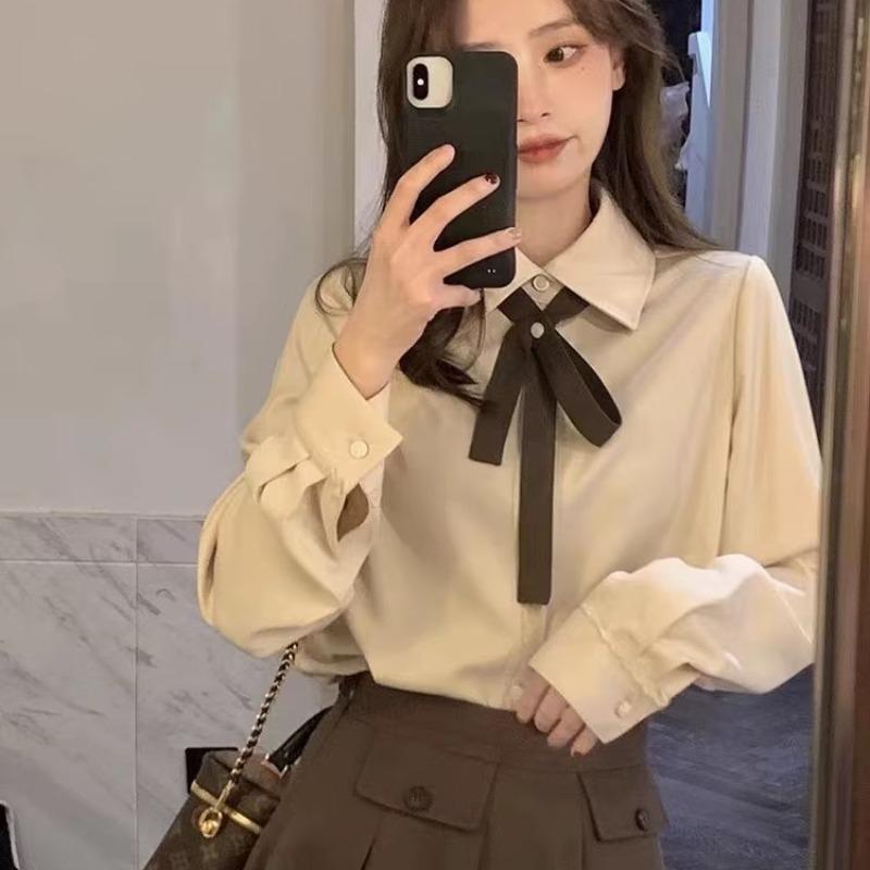Элегантные абрикосовые блузки, женские рубашки в корейском стиле, офисная женская одежда, топы в стиле Харадзюку