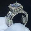 Великолепное женское серебряное цветное квадратное кольцо со стразами белого цвета, модное свадебное помолвочное ювелирное изделие — купить товар онлайн с бесплатной доставкой по всему миру!