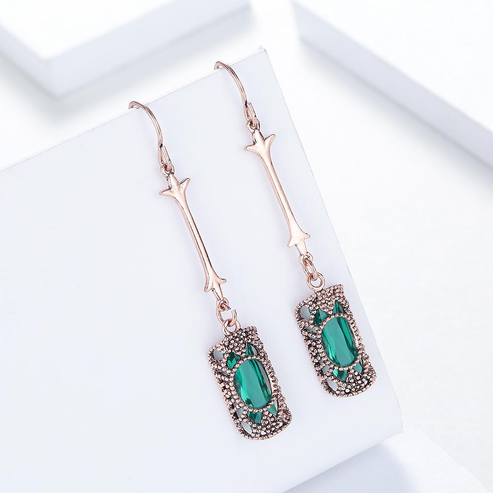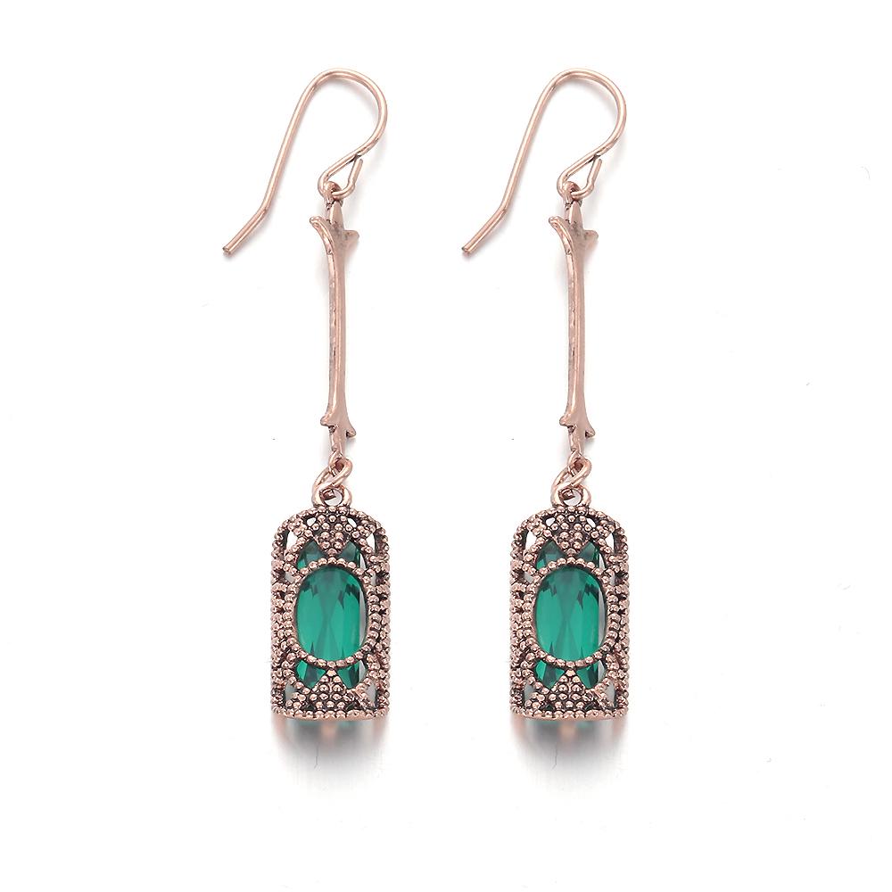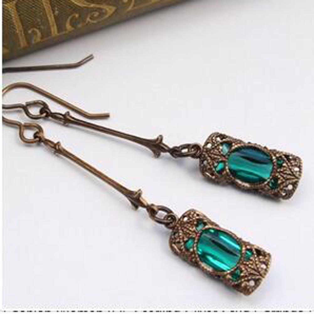 Женские украшения из цинкового сплава, цилиндрической формы, винтажные, с зеленым стеклом, серьги-подвески с крючком