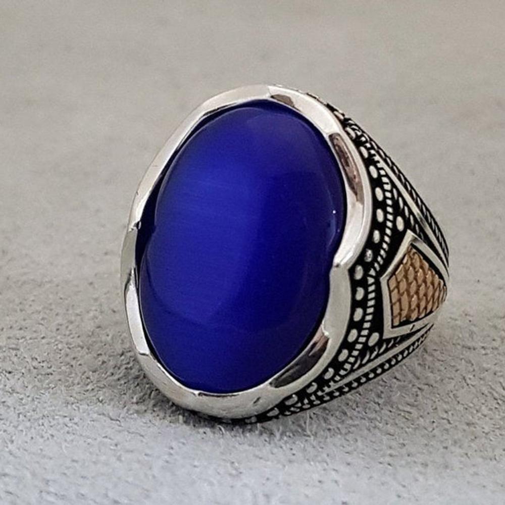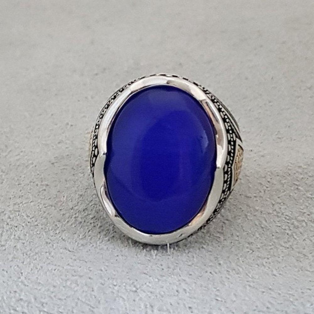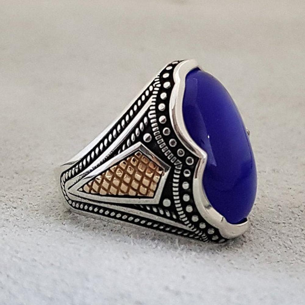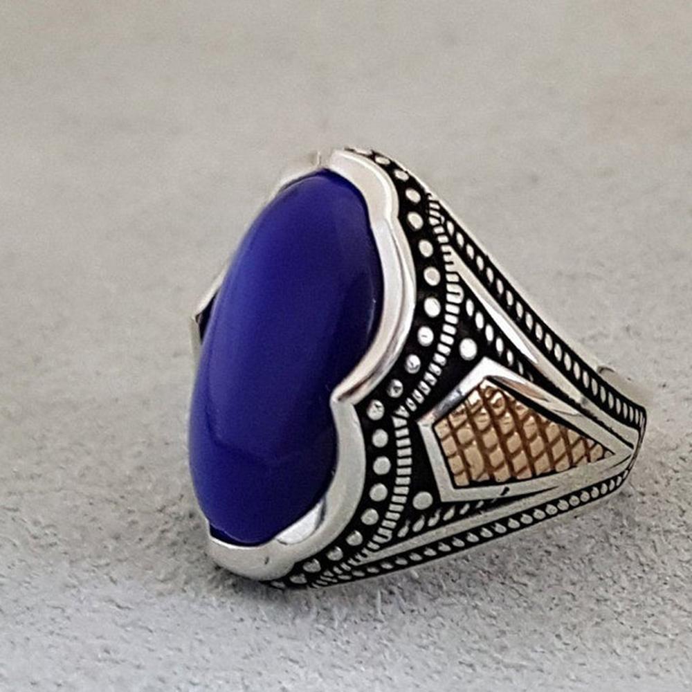 Мужское кольцо с лазуритом, Мужское кольцо из твердого серебра 925 пробы, Дизайнерское кольцо ручной работы, Заявление, Кольцо с драгоценным камнем, Подарок для него,