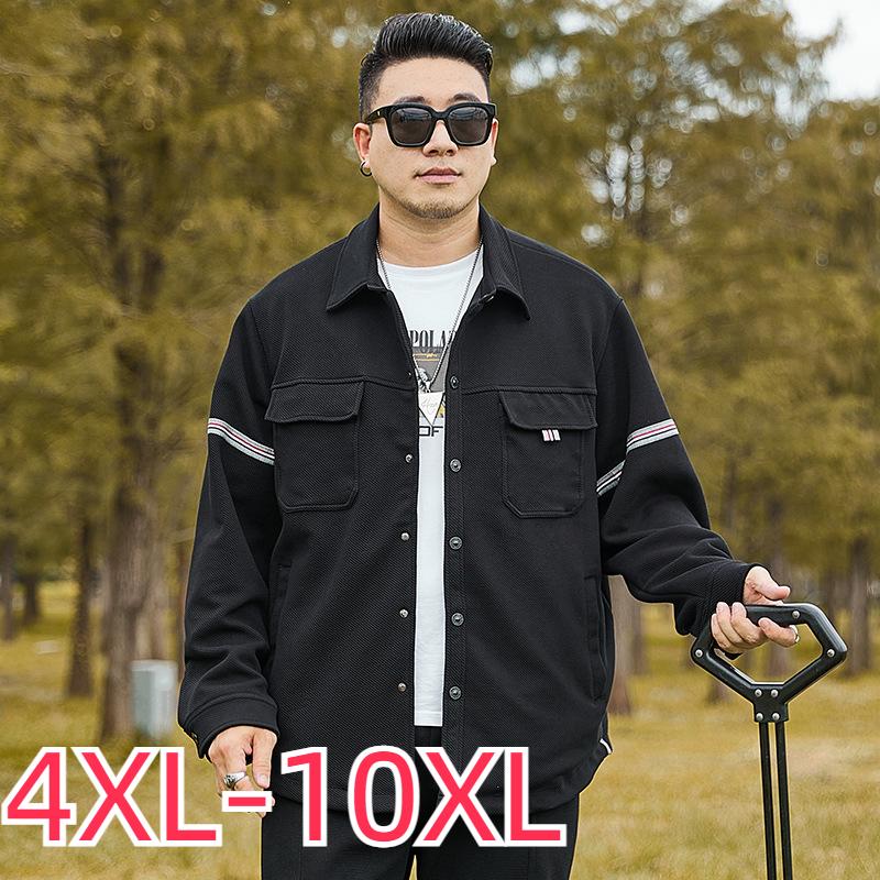 Мужская куртка в стиле рубашки больших размеров весной и осенью, куртка для спецодежды большого размера, модный повседневный свободный толстый мужчина 4XL-10XL