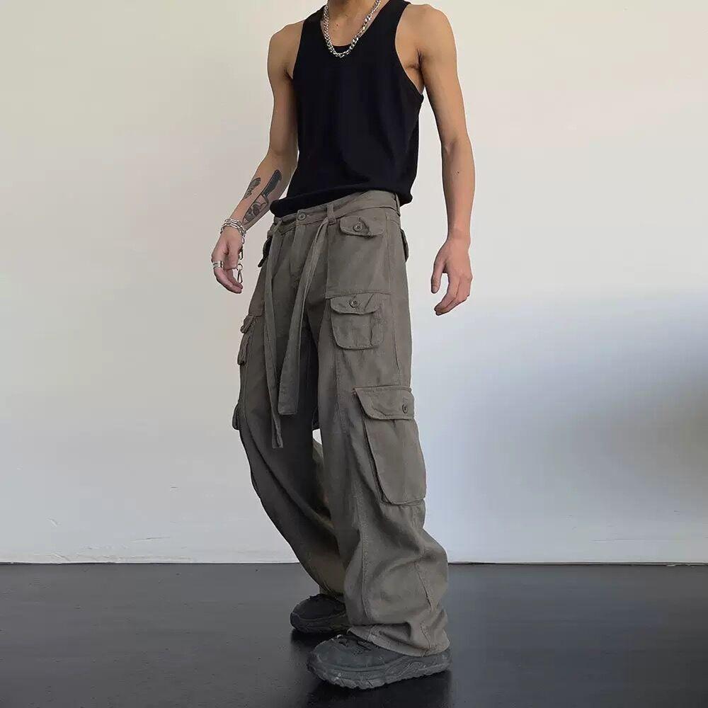 Брюки-карго в стиле ретро, повседневные комбинезоны с большими карманами, мужские свободные прямые широкие брюки с высокой талией — купить товар онлайн с бесплатной доставкой по всему миру!