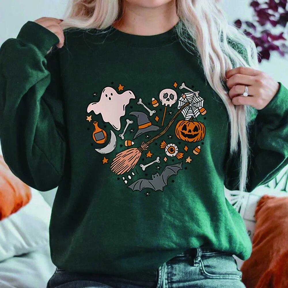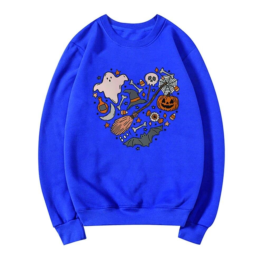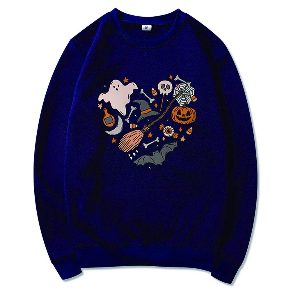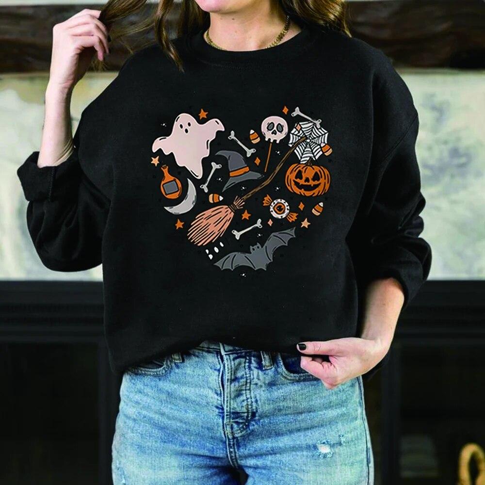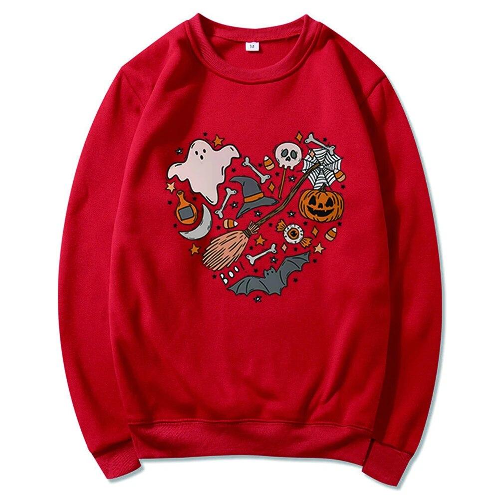 Толстовка унисексCute Love Halloween Толстовка Хэллоуин Сердце с капюшоном Хэллоуин Каракули Дерьмо Крутая футболка с призраком Жуткий топ Унисекс Повседневная толстовка