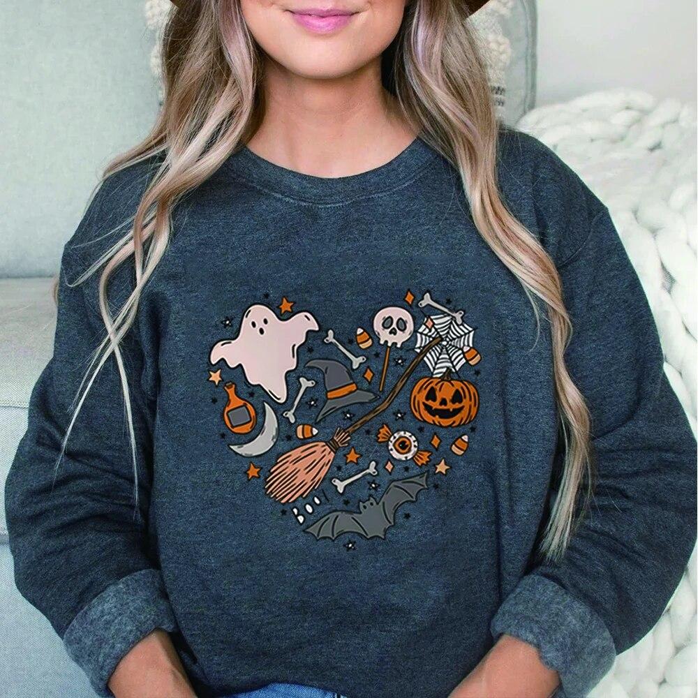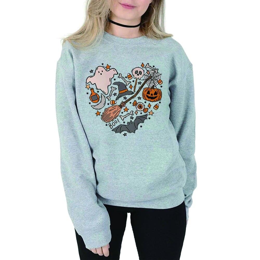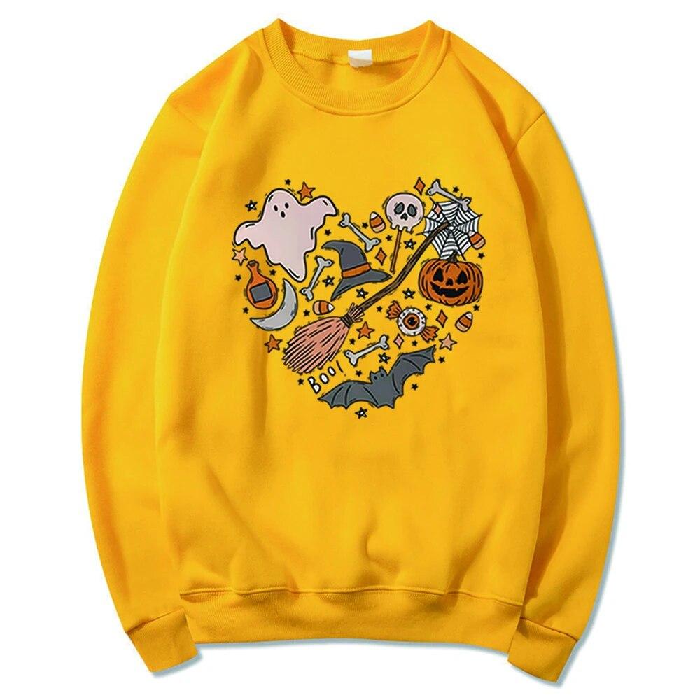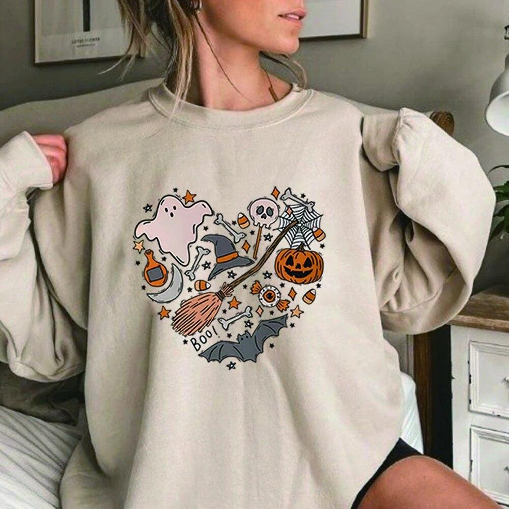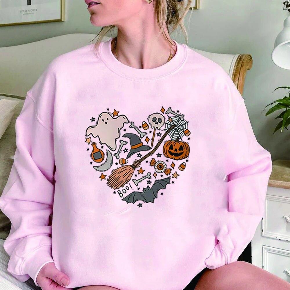 Толстовка унисексCute Love Halloween Толстовка Хэллоуин Сердце с капюшоном Хэллоуин Каракули Дерьмо Крутая футболка с призраком Жуткий топ Унисекс Повседневная толстовка