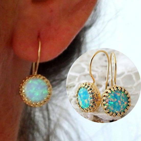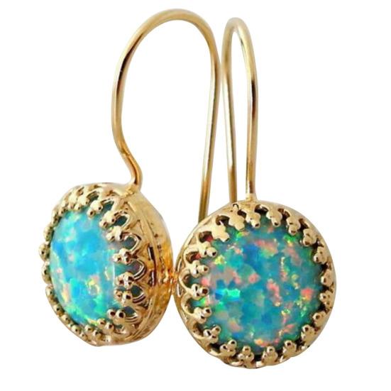 Винтажные женские многоцветные круглые серьги из искусственного опала с резными висячими крючками, ювелирные изделия