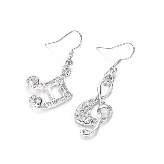 Женская музыкальная нота, скрипичный ключ, горный хрусталь, висячие серьги-крючки, ювелирные изделия