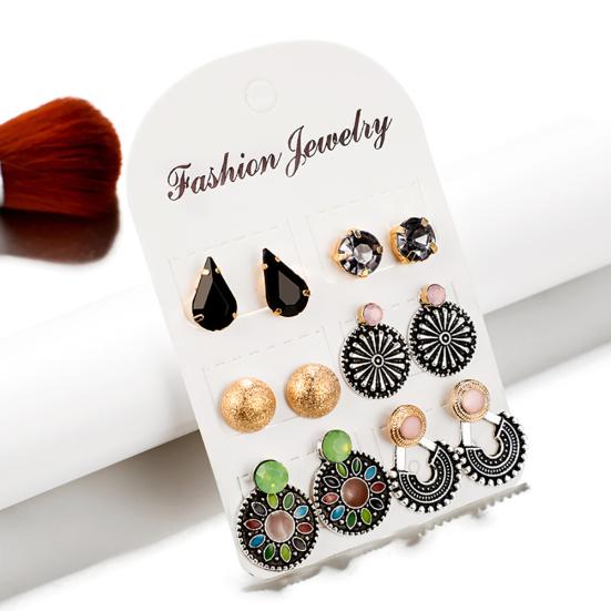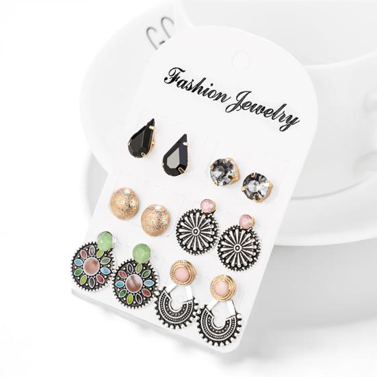 6 пар/компл. женские серьги-гвоздики круглой U-образной формы с цветком, ювелирные изделия