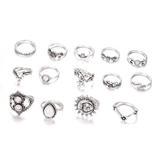 14шт Винтаж Подсолнух Луна Палец Миди Костяшки Кольца Набор Женщин Ювелирные Изделия Партии