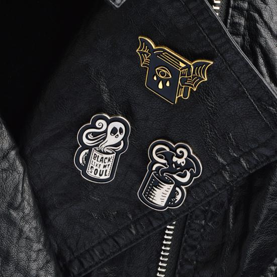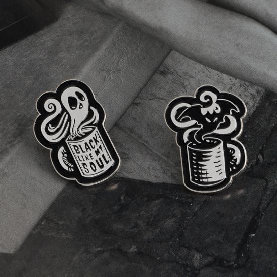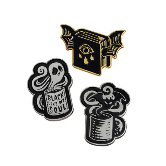 Панк Летучая мышь Летающая книга Кофейная чашка Брошь Булавка Эмалированная куртка Сумка Ювелирный клуб Подарок