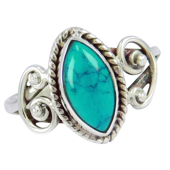 Антикварное кольцо на палец с бирюзой огранки маркиза, женское тибетское резное ювелирное изделие, подарок