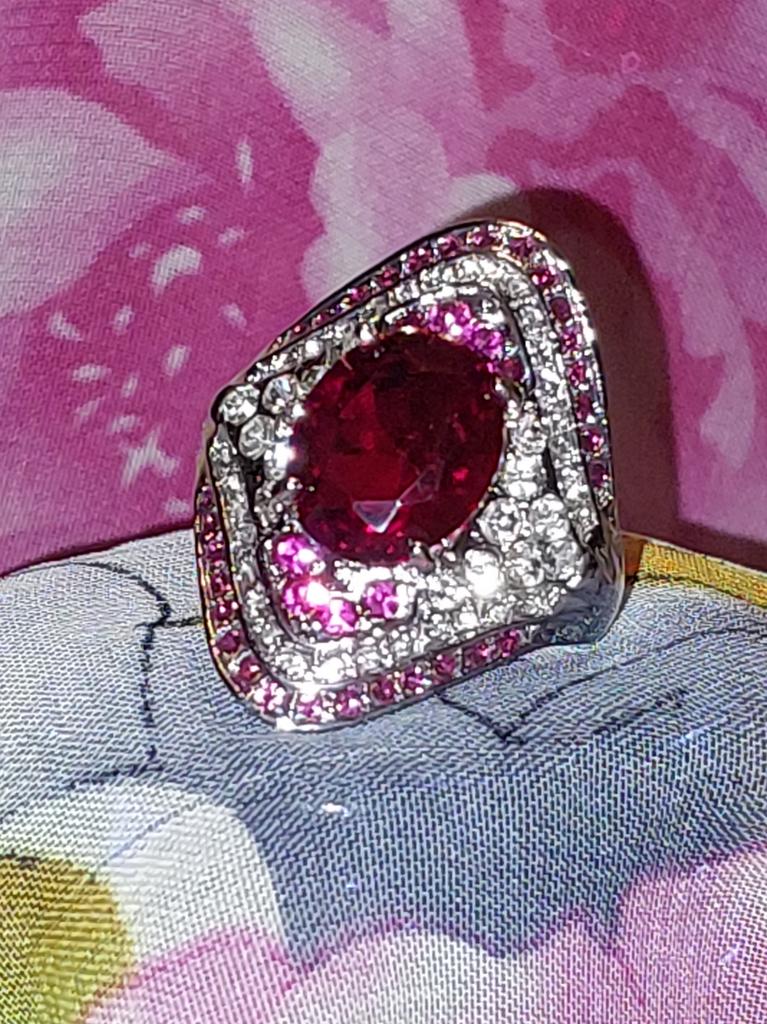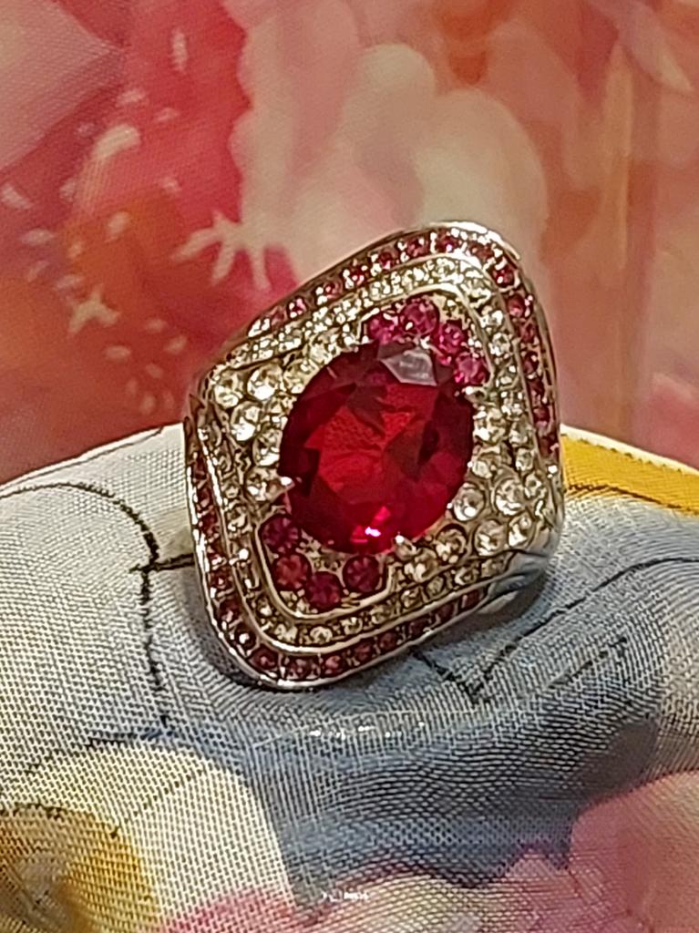 Колечко шикарное, цвет бардо, обромление розовыми и белыми камешками блестит, яркость софитов! Крупное. Рекомендую. Спасибо Джумик и продавцу респект. ✍️💐👍👋👆💋❤️💯🙏🙏💐👍👋👍👋❤️