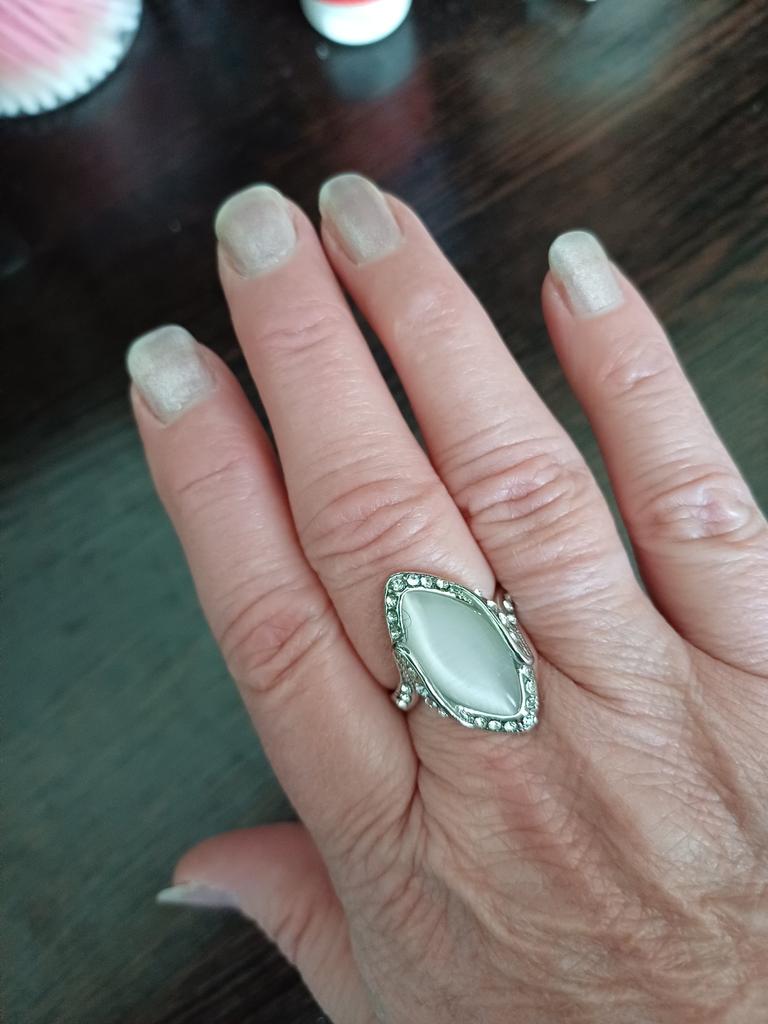 Кольцо симпатичное, немного похоже на серебряное, камушки маленькие блестят, большой камушек вроде тоже ничего. Бижутерия красивая, спасибо