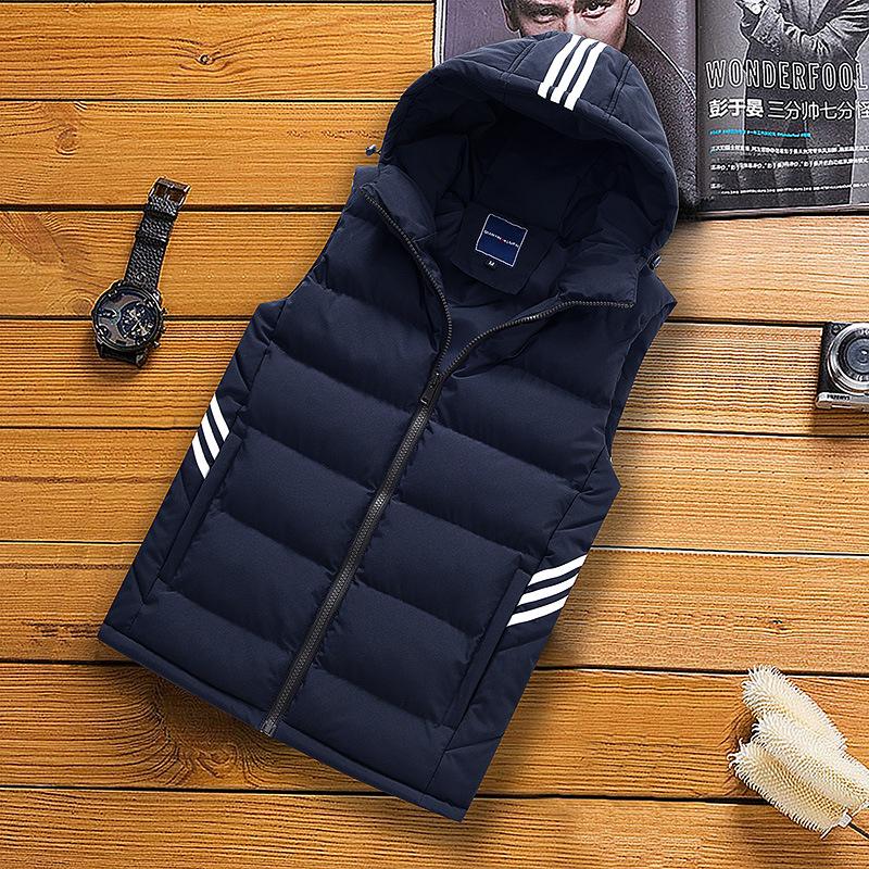 Осенне-зимний мужской толстый теплый однотонный повседневный жилет с капюшоном Мужской хлопковый жилет