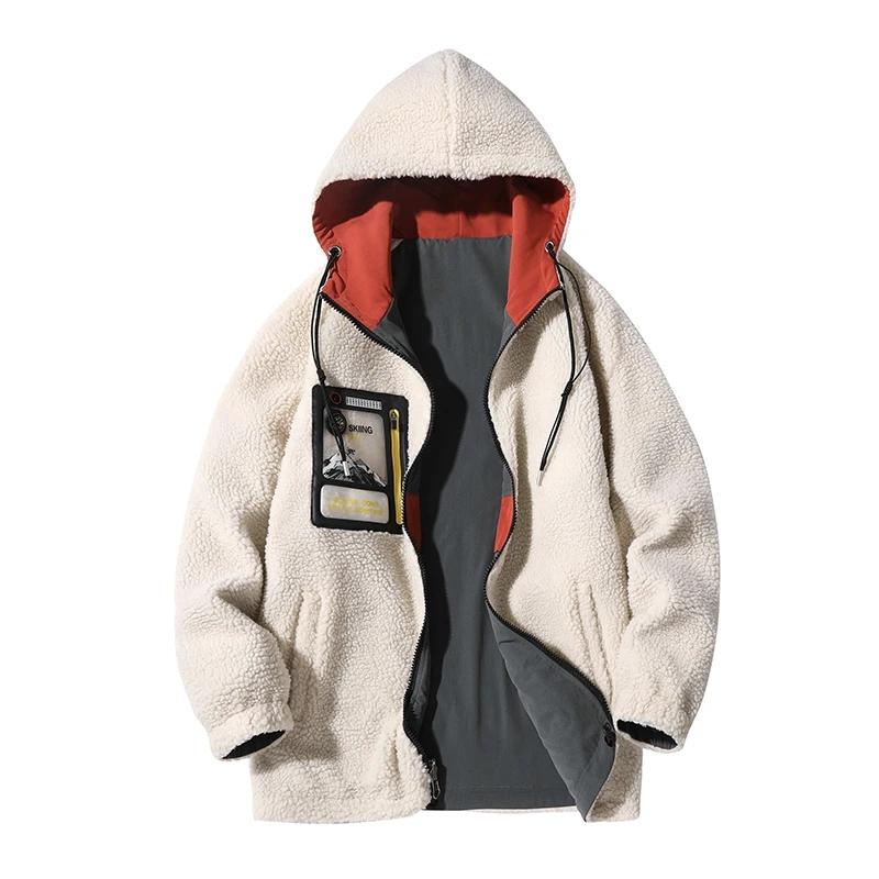 Осенне-зимняя новая куртка большого размера из овечьей шерсти с двух сторон для ношения на хлопковой подкладке, модная лоскутная куртка плюс флисовое толстое пальто, мужская одежда