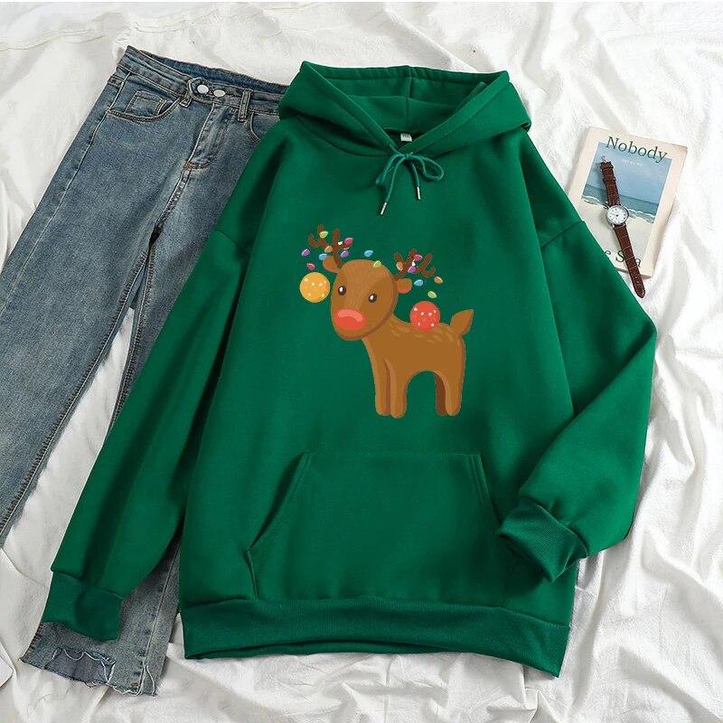 KAWAII рождественские толстовки с лосем женские унисекс Harajuku модная рождественская уличная одежда осенне-зимние теплые толстовки с капюшоном пуловер Ropa Mujer