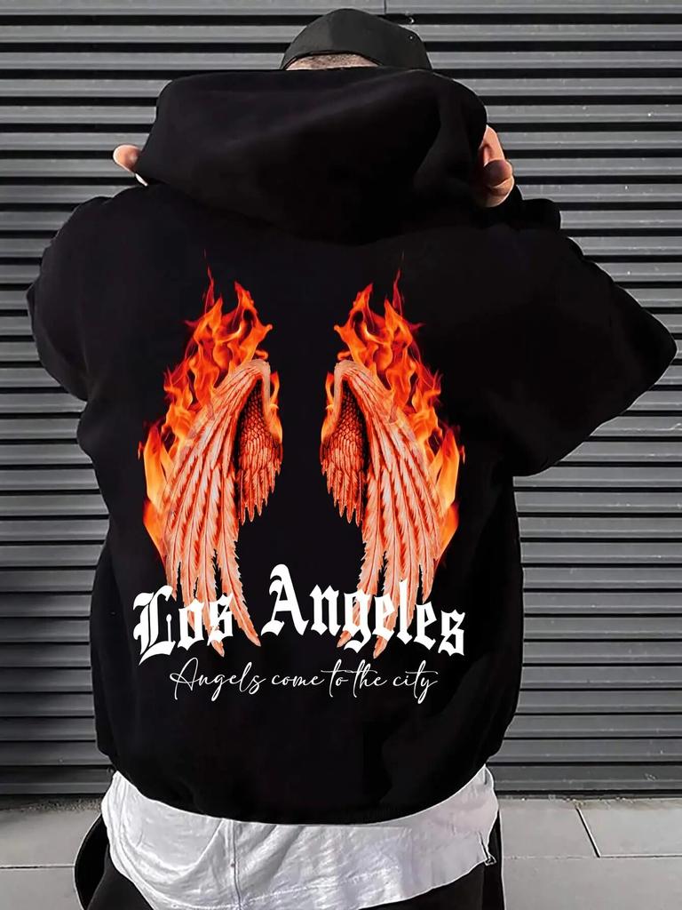 Лос-Анджелес Забавный узор пламенных крыльев унисекс Толстовка с карманом Повседневная толстовка Креативная флисовая уличная одежда Новые универсальные пуловеры унисекс
