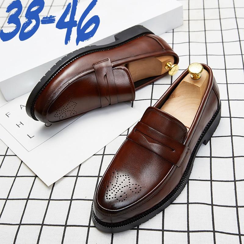 Роскошные брендовые пенни-лоферы, мужская повседневная обувь, кожаные модельные туфли без шнуровки, большие броги с резьбой, лоферы для вождения, вечеринки