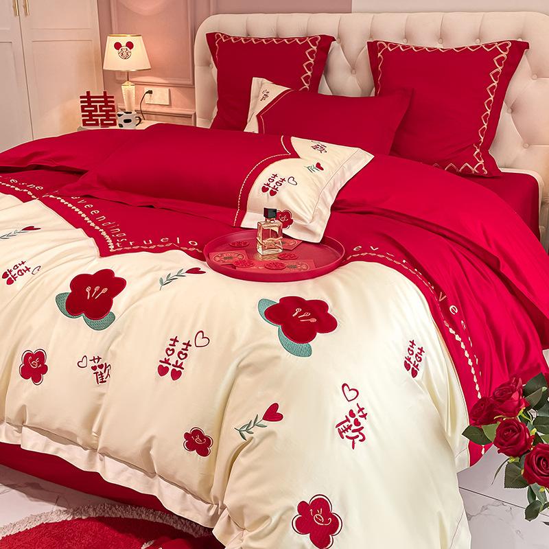 Свадебный комплект из четырех предметов из чистого хлопка для свадебной комнаты, пододеяльник из чистого хлопка для молодоженов, постельные принадлежности