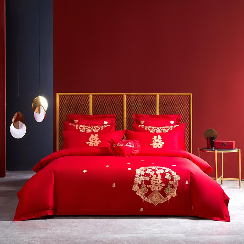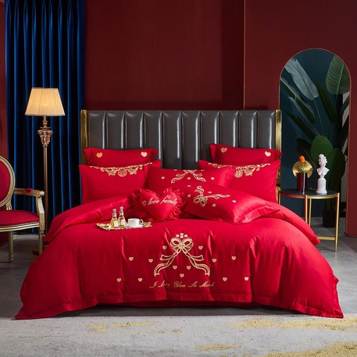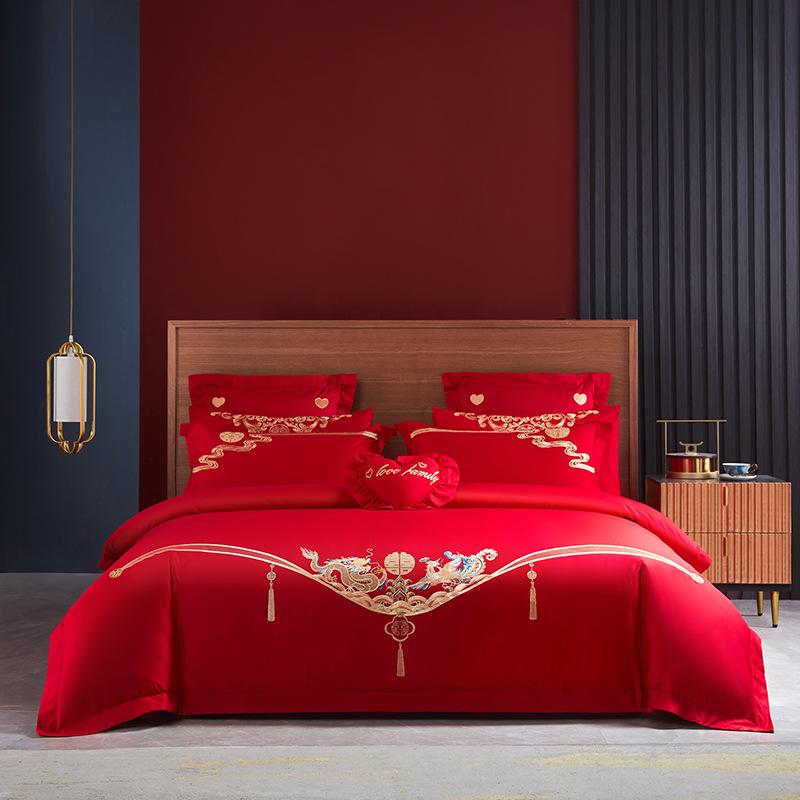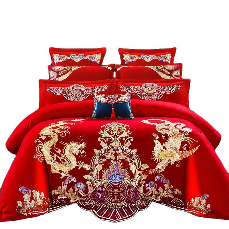 Комплект из четырех предметов с свадебной вышивкой, красное свадебное стеганое постельное белье, свадебное пододеяльник, постельное белье для молодоженов, свадебный комплект из шести предметов из розового нефрита