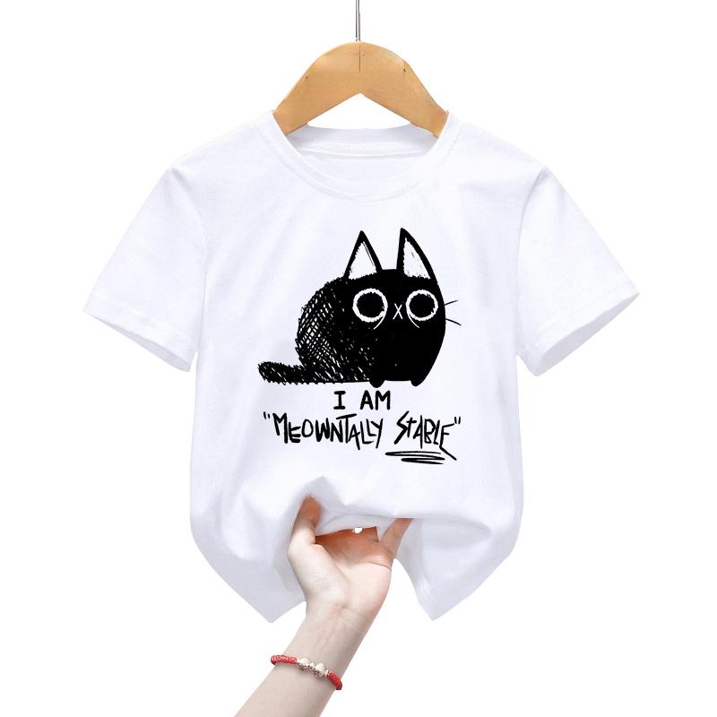 Детские футболки для детей от 2 до 12 лет, футболки с изображением черного кота для девочек и мальчиков, классические детские футболки с милым домашним питомцем и котом, детская одежда с котом