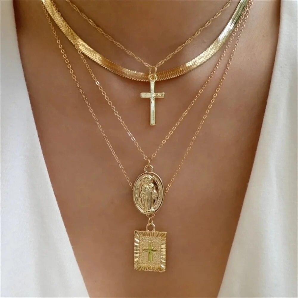 Чудо-модное ожерелье в форме сердца золотого цвета для женщин, модные многослойные ожерелья с подвесками, набор ювелирных изделий, подарки