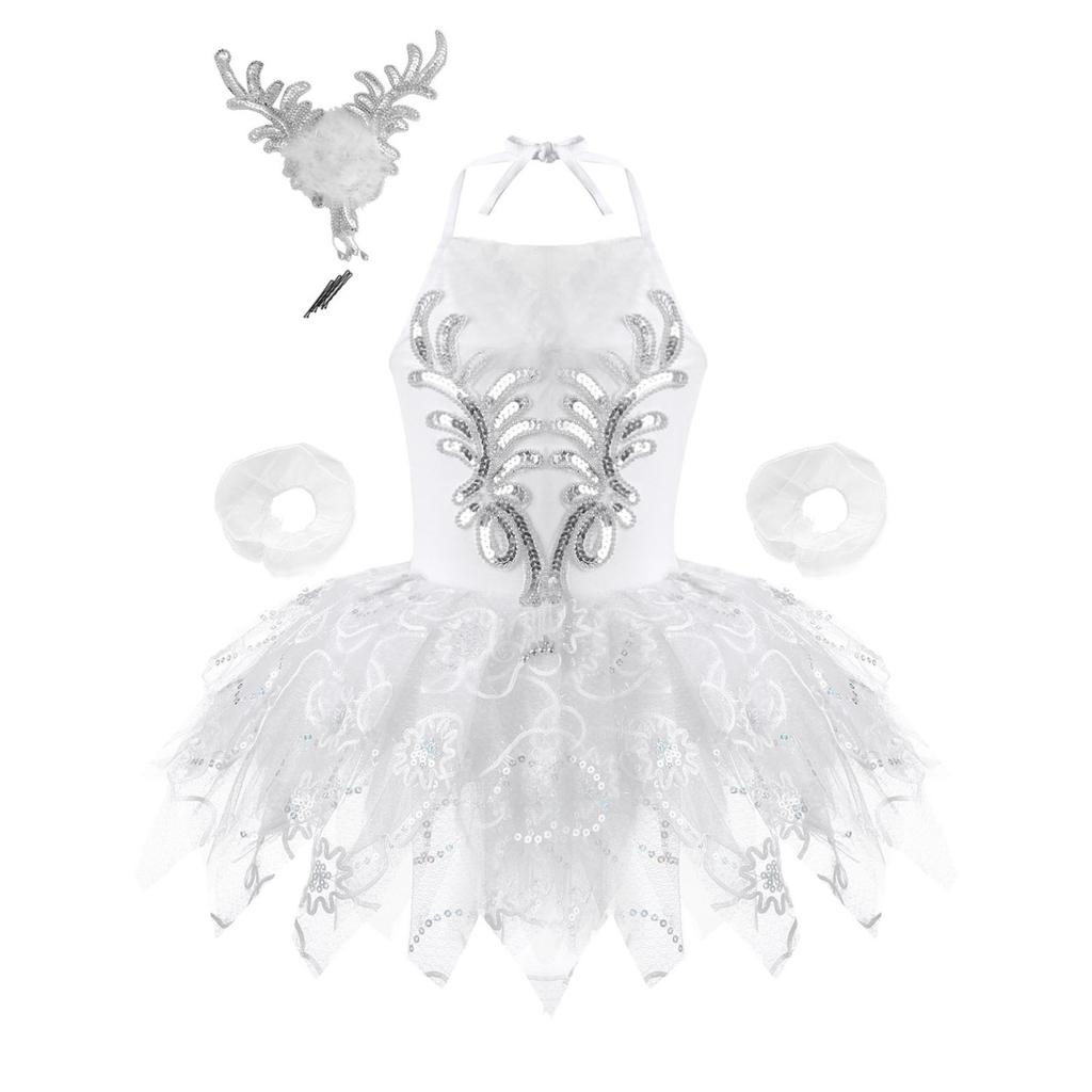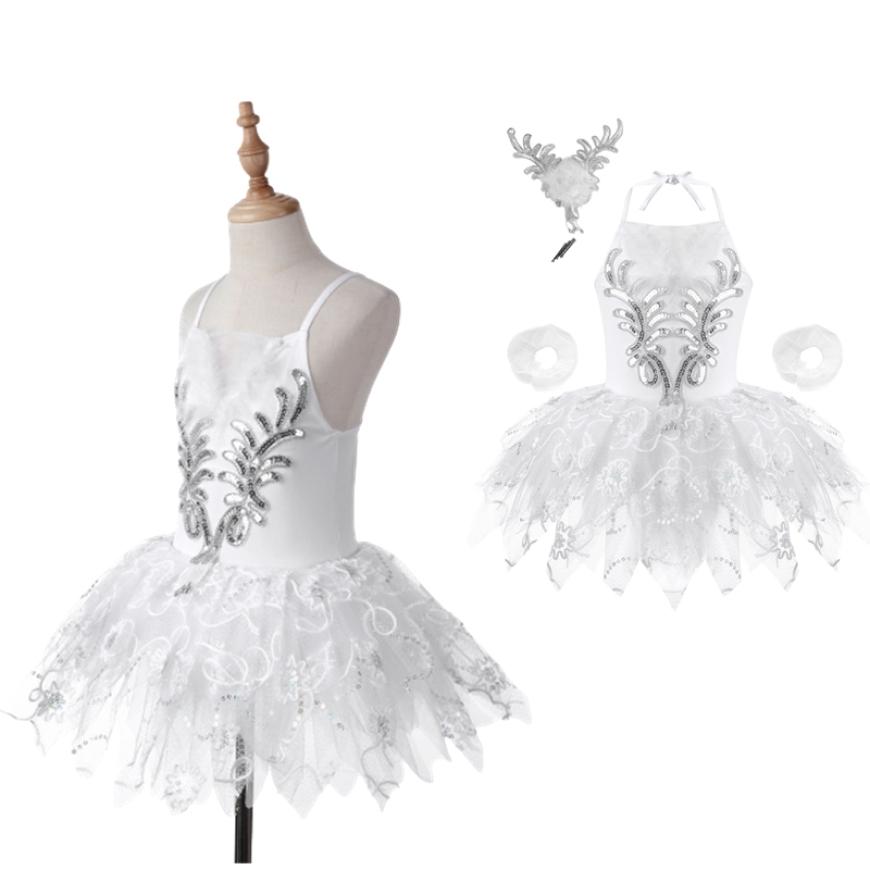 Детский танцевальный костюм балерины для девочек, балетный трико с лебедем, танцевальное платье-пачка с браслетами, головной убор