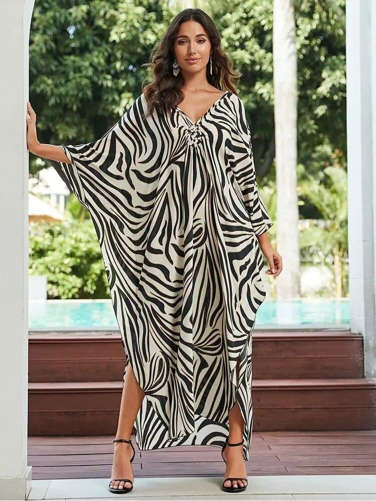 EDOLYNSA Кафтан больших размеров с богемным принтом, летнее длинное пляжное платье, женская домашняя одежда, купальный костюм, накидка, свободный кафтан
