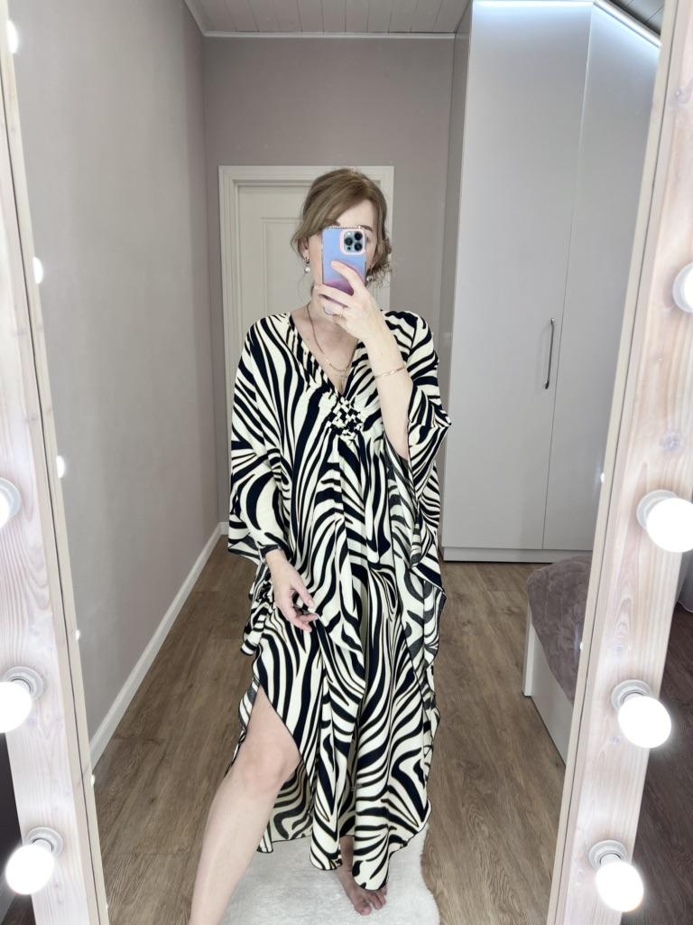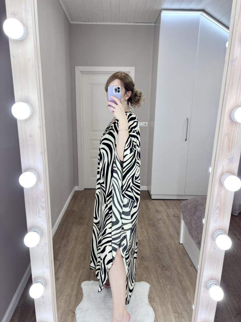 Туника для морского отдыха. Всем привет! К отпуску лучше подготовиться заранее, вот и я обновляю одежду для пляжа. Поэтому, хочу показать вам изделие, которое недавно получила. Расцветка клевая, вроде не пестрая, но смотрится стильно и актуально. Ткань комфортная. Это вискоза, легкая и дышащая. Будет быстро сохнуть. По фасону туника прямая, с закругленным низом. По бокам-разрезы. Вырез V-образный с декором на груди. Мне нравится, как она развивается во время движения) А в магазине Edolynsa много таких и других пляжных туник и накидок. Советую. Жду лета😜 P.S.Мои параметры 90-72-99, рост 169. Села свободно. До 52 российского размера включительно, точно подойдет.