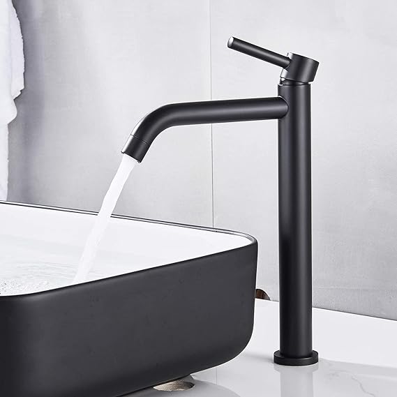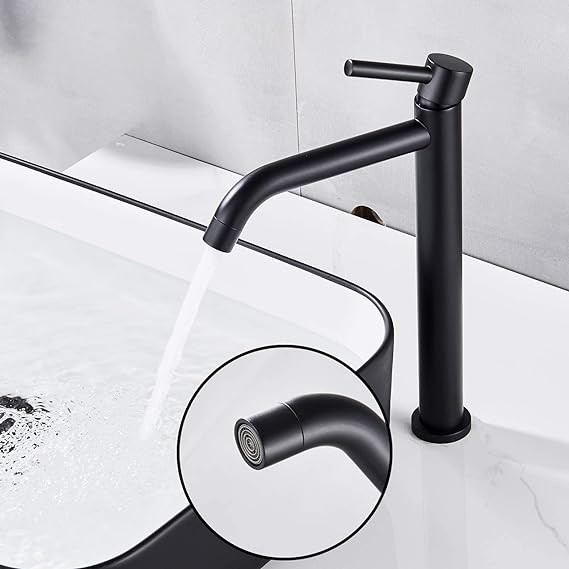 Смеситель для умывальника, черный смеситель для раковины, однорычажный смеситель с высоким изливом и ручкой для вышивки для ванной комнаты