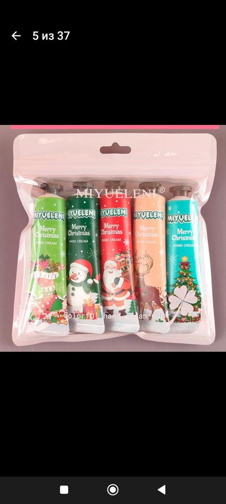 🙋 Доброго времени суток!! Крем для рук, 5 штук, в новогодней тематике 😀🎄 Новогодний олень Новогодняя ёлка Новогодний носок Снеговик Санта-клаус Каждый тюбик по 30 гр. Все тюбики под крышкой запломбированы защитной фольгой. Срок годности 17.11.2027 Состав: вода, минеральное масло, глицерин, ацетостеариловый спирт, полиакриламид. Изопарафины 13-14. Спиртовые пары C20-40, MOM, дидантайлореа, диоктилдодеканол, роилглутамат, карбомер. Метаноламин. Следовые компоненты: сульфат натрия. 12-16 спирт, лаурилсульфат натрия. De wiessence. Полиэфир лаурилового спирта! СПОСОБ ПРИМЕНЕНИЯ: После мытья рук Нанесите необходимое количество средства равномерно на кожу лица и массируйте до полного впитывания. Примечание: Этот продукт предназначен для наружного применения. Если вы испытываете дискомфорт, немедленно прекратите использование и промойте чистой водой. Товар рекомендую 👍 Всем удачных покупок!! 👌 Мой канал в телеграмм: t.me/joom2618