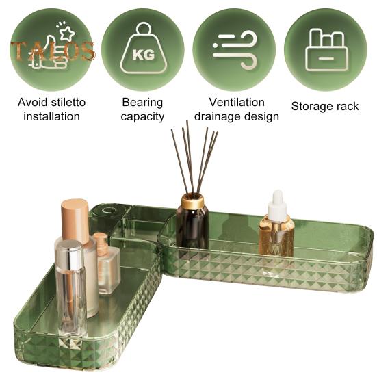 Он подходит для всех видов стен или гладких поверхностей, таких как плитка, стекло, деревянные панели, мрамор и так далее. Обладая насыпной и самоклеящейся конструкцией, полка для хранения не имеет перфорации, удобна и экономит время в установке, а также не может повредить стену.