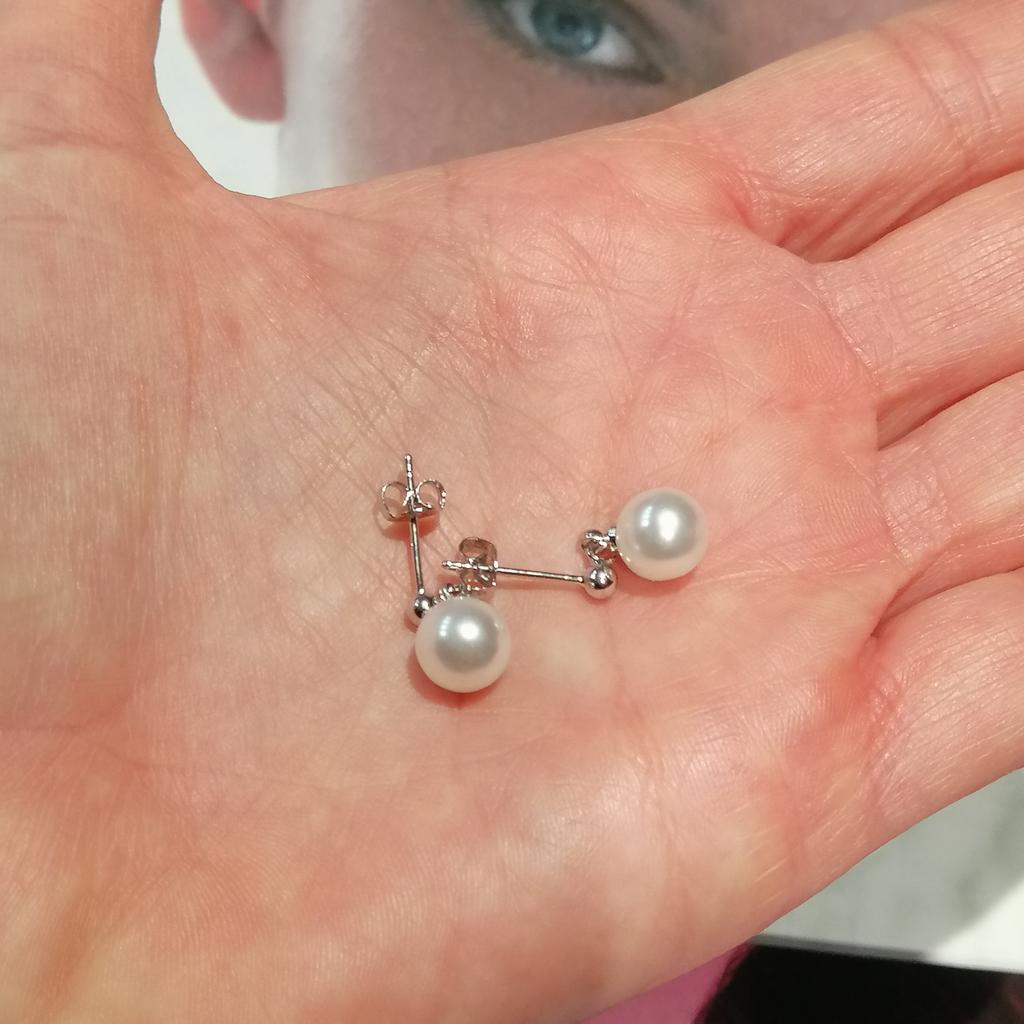 Элегантные сережки-гвоздики с маленькими жемчужинам сочетают в себе классику и минимализм. Серьги выполнены из стали покрытой цирконием, материал гипоаллергенный. Уши не болят после дня носки, серьги не раздражают кожу в месте прокола, не темнеют долгое время если соблюдать все правила ухода за бижутерией. Минималистичные сережки отлично подходят для сдержанного офисного образа и яркого вечернего. Диаметр жемчужин составляет 8 мм. Серьги очень надёжно закрываются замком и случайно не открываются. ⭐ Продавец положил товар в прозрачный зип-пакет и почтовый конверт. ⭐ Трек номер отслеживался до почтового отделения. ⭐ В приложении пришло уведомление о готовности к выдаче заказа. ⭐ Доставка в Петербург заняла 35 дней.