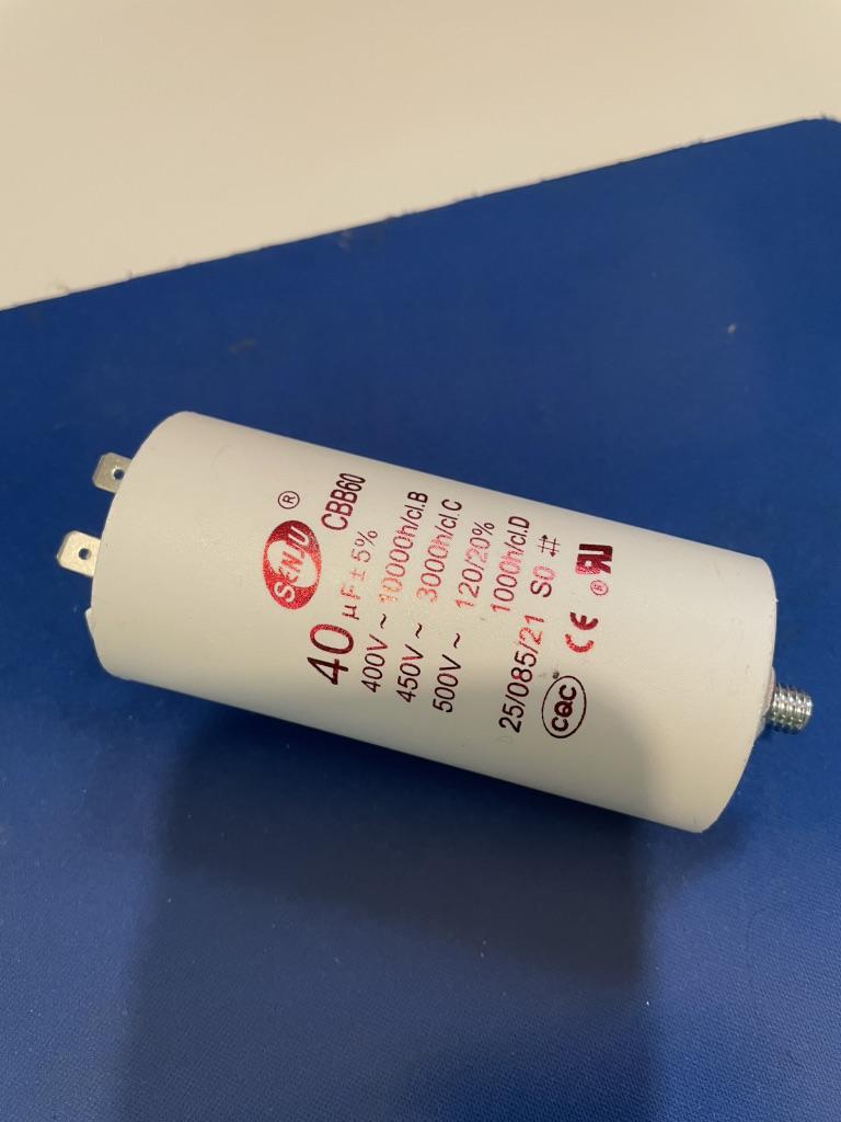 Номинальная мощность и напряжение: Рабочий конденсатор CBB60 имеет номинальную емкость 40 мкФ и допуск ±5%.. Он рассчитан на работу при номинальном напряжении 450 В переменного тока, обеспечивая надежную работу в различных электрических системах.
