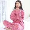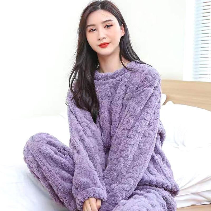 Женские терможаккардовые длинные брюки, однотонные пижамные комплекты из кораллового флиса, пуловер, повседневная одежда для сна