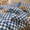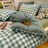 Простыня в клетку из четырех предметов и пододеяльник в японском стиле в скандинавском стиле, набор из трех предметов из стираного хлопка с начесом