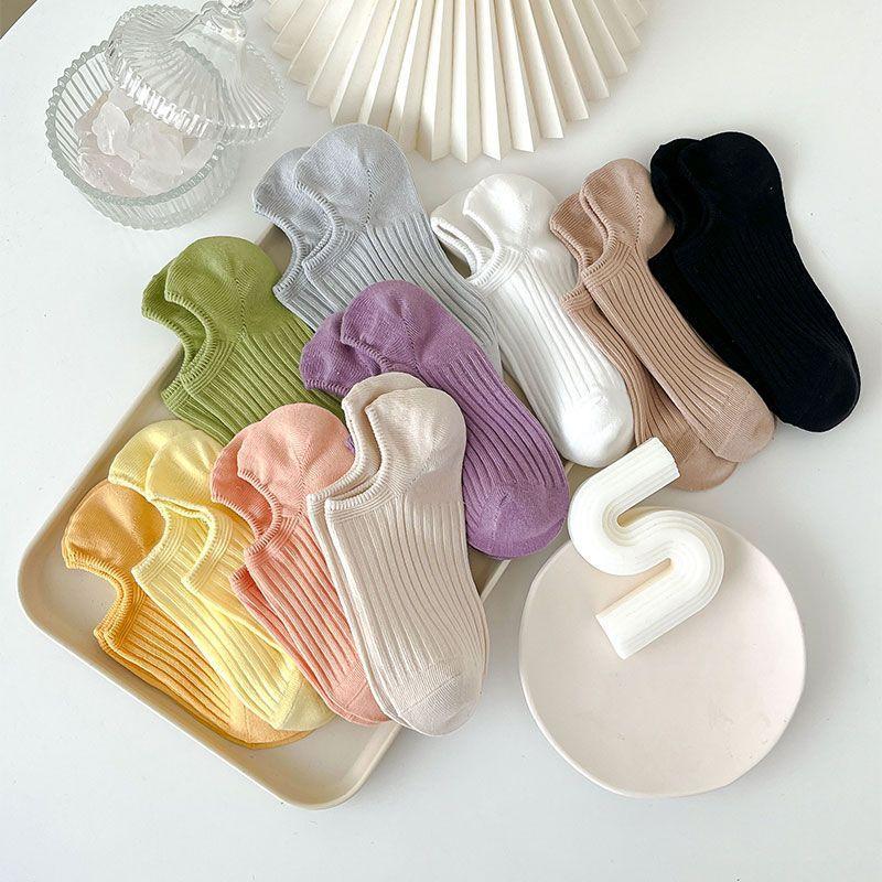 Женские полосатые носки-лодочки, тонкие легкие противоскользящие носки до щиколотки, невидимые носки ярких цветов