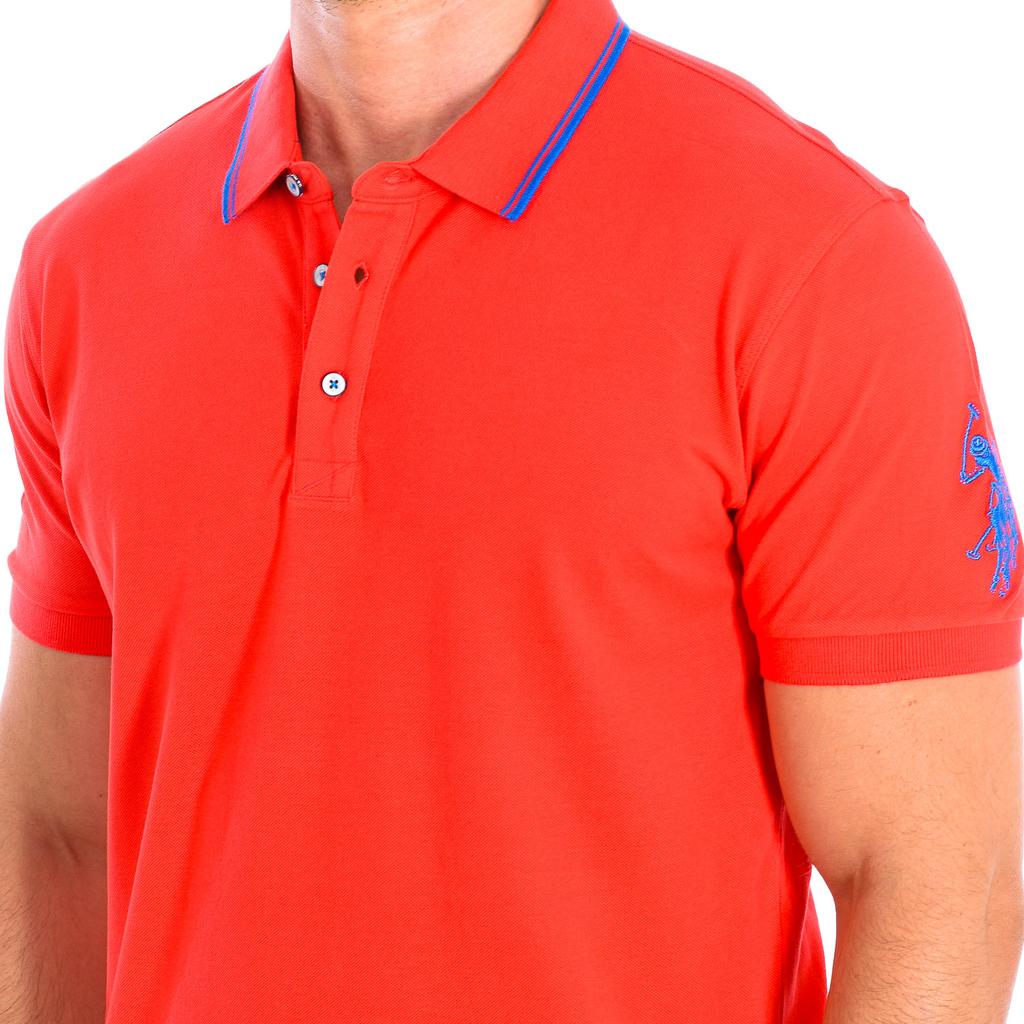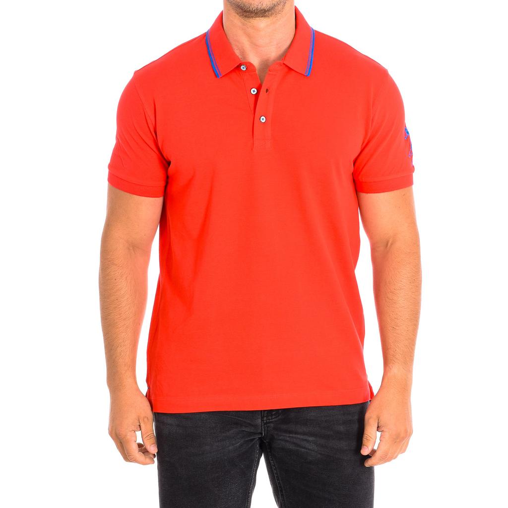 Мужская рубашка поло с коротким рукавом BUST и контрастным воротником-лацканом 61677