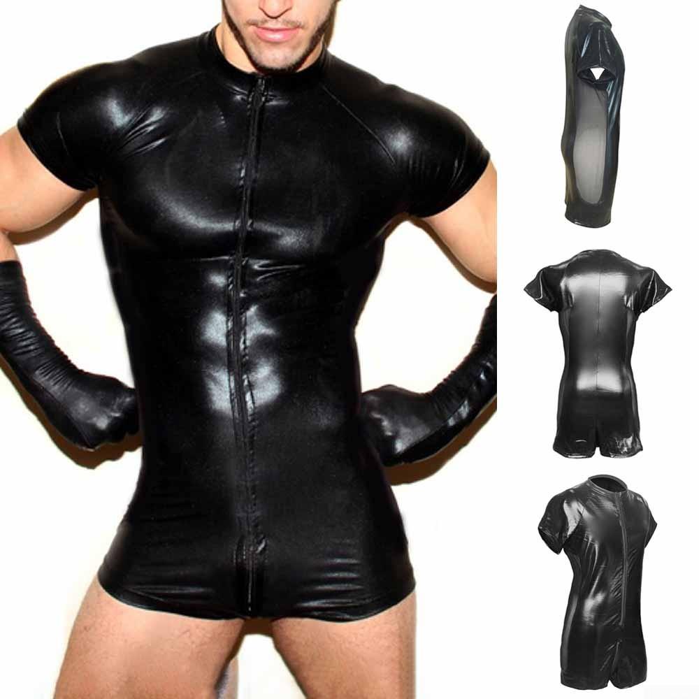 * Описание предмета:️Мужской мокрый взгляд Лакированный кожаный чехол Zip Короткий комбинезон Боди Клубная одежда Костюм Купальник
