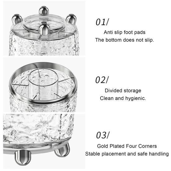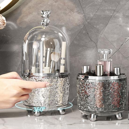 Вращающаяся на 360 градусов конструкция обеспечивает плавный и быстрый доступ к хранящимся предметам, сохраняя инструменты для макияжа организованными и легко доступными.