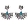 Винтажные серьги-гвоздики с металлической инкрустацией из искусственной бирюзы в форме веера, женские серьги-гвоздики, ювелирные изделия
