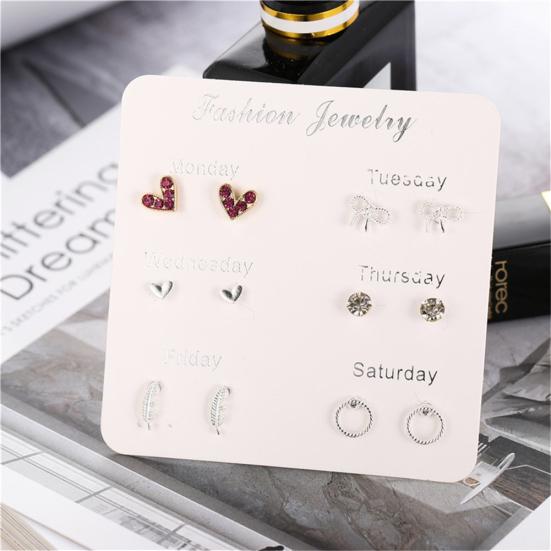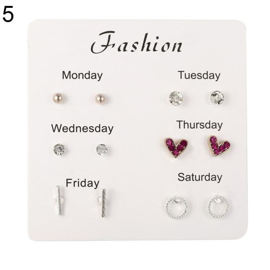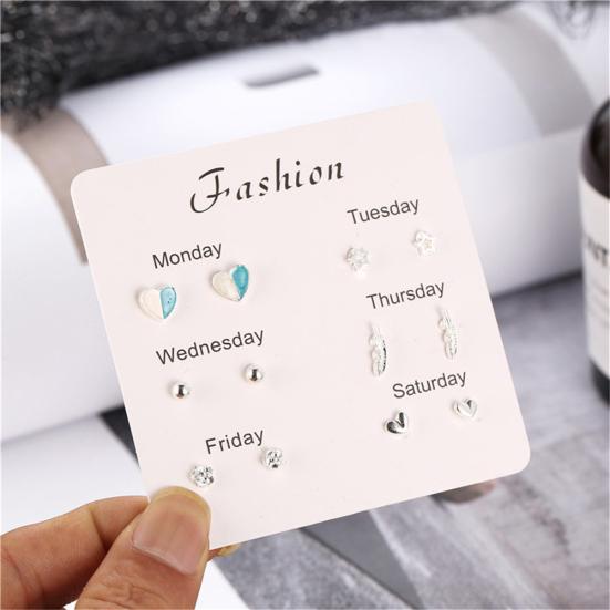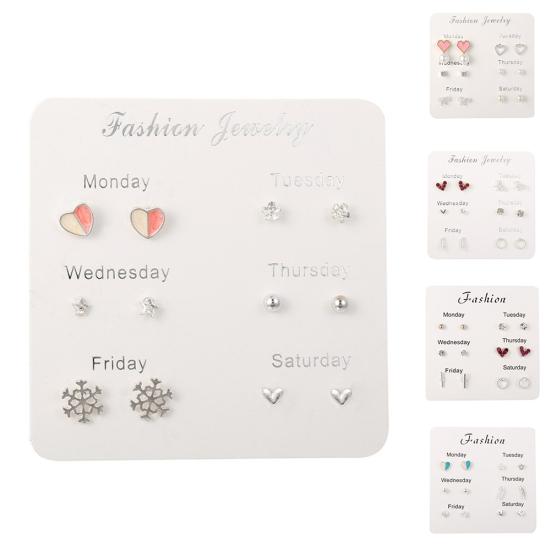 6 пар женщин снежинка сердце звезда лист искусственный драгоценный камень серьги-гвоздики ювелирные изделия подарок