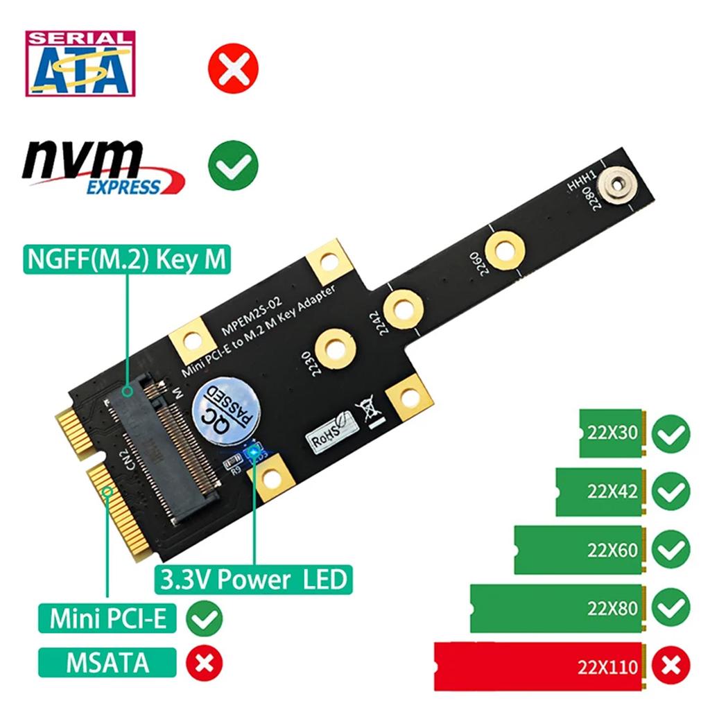 Адаптер Mini PCIE к NVME SSD Mini PCIExpress к M.2 M, конвертер ключей, плата расширения, плата расширения для 2230 2242 2260 2280