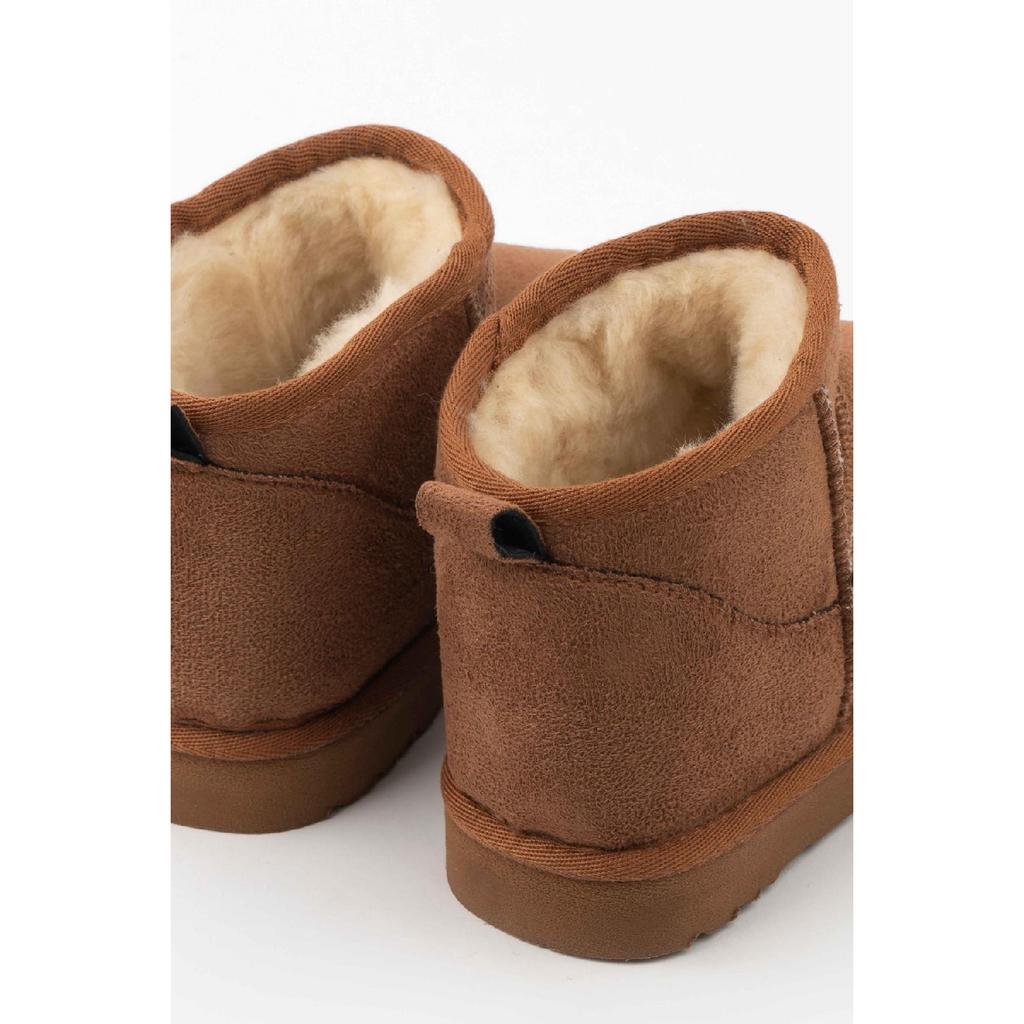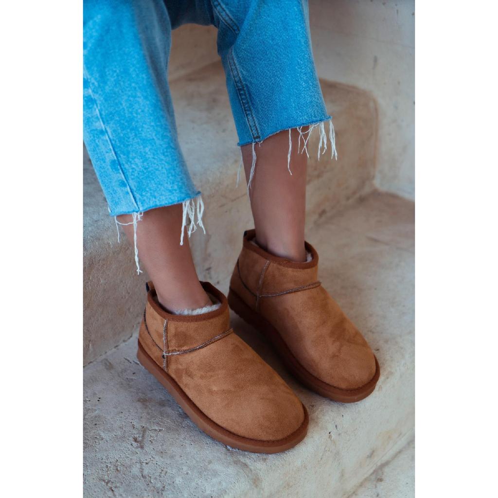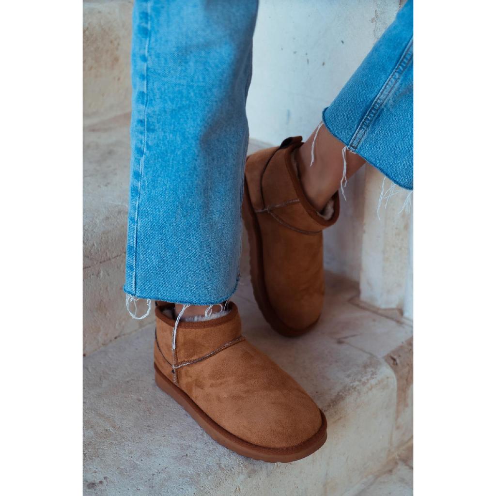 Мини-коричневые замшевые ботильоны с меховой внутренней частью на плоской подошве. Женская обувь
