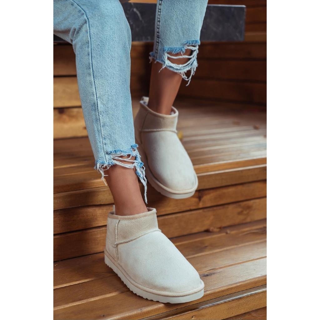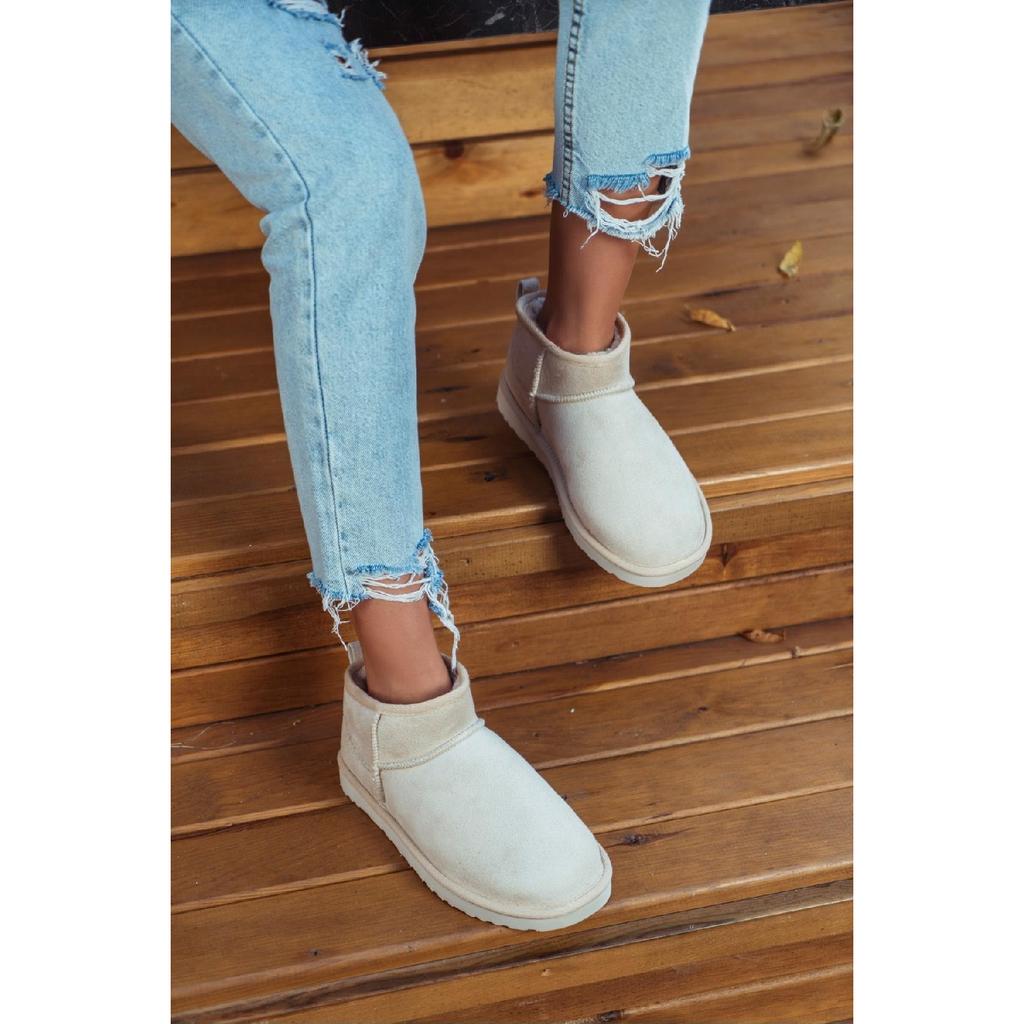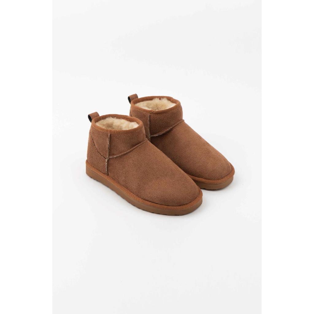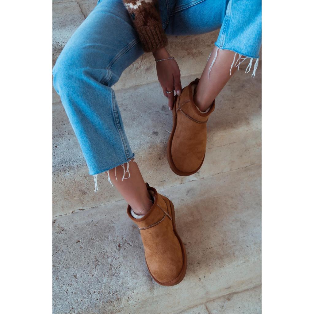 Мини-коричневые замшевые ботильоны с меховой внутренней частью на плоской подошве. Женская обувь