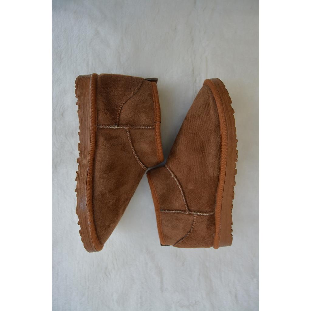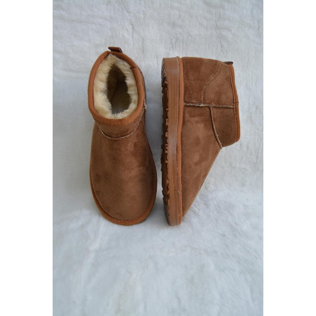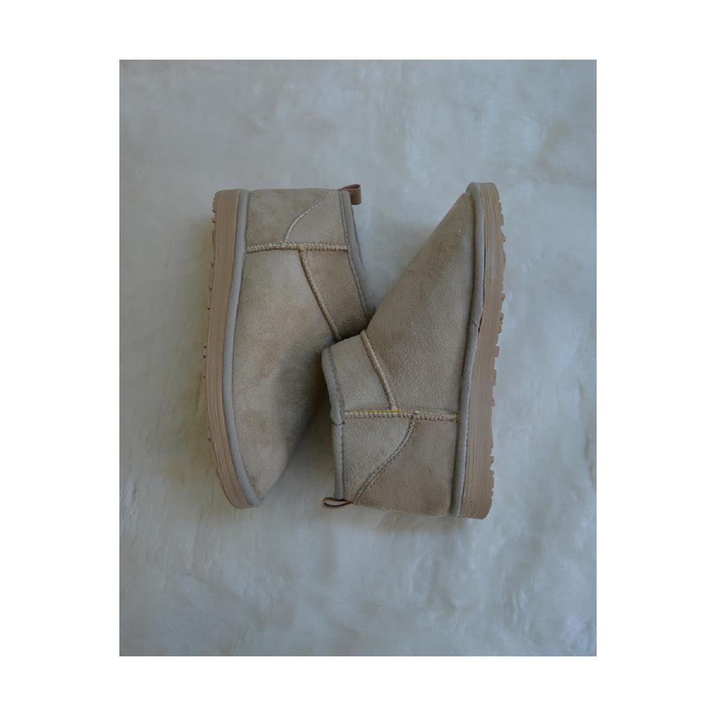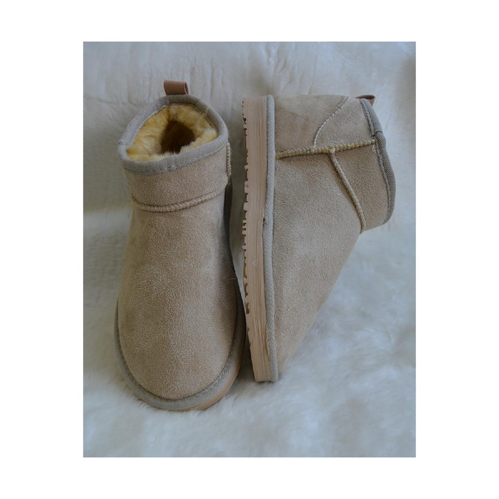 Женские зимние замшевые ботинки ультра мини бежевого цвета с мехом внутри