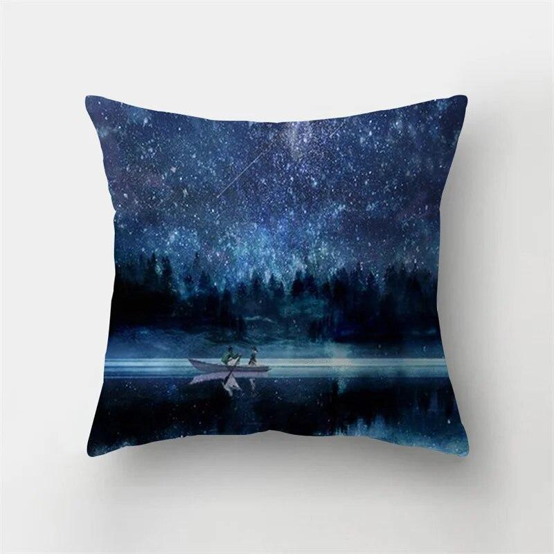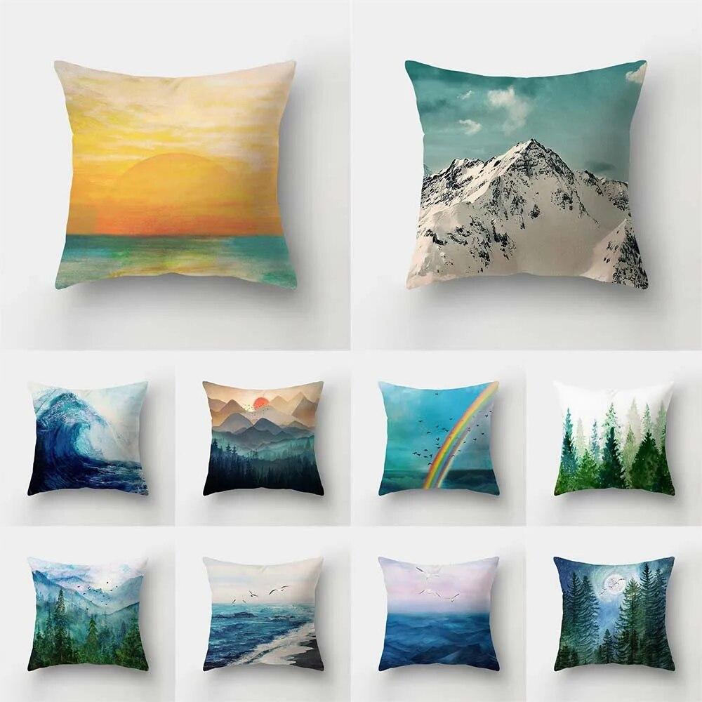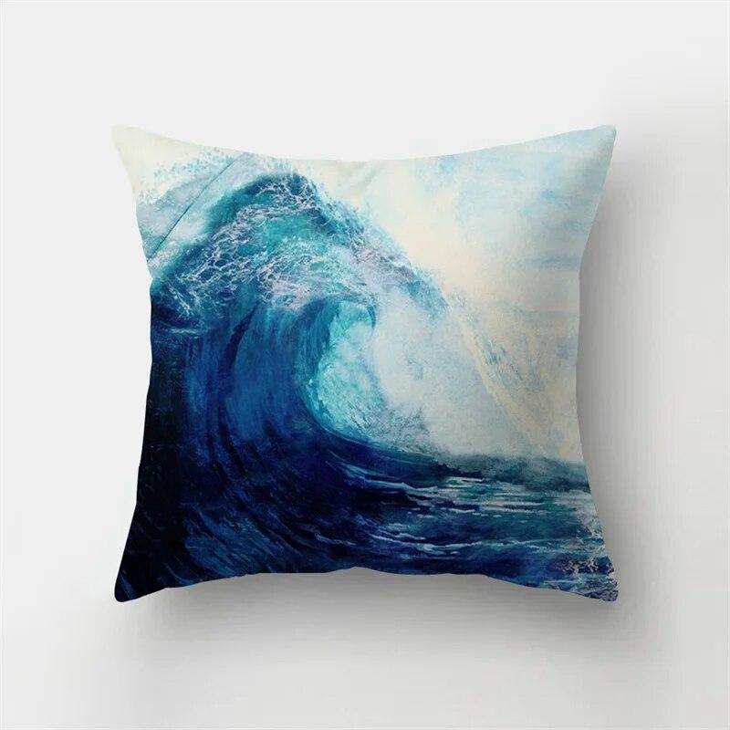 Синий морской пейзаж с тушью пейзажный принт с узором наволочка для дома, гостиной, дивана, декоративная подушка, наволочка 40X40 см