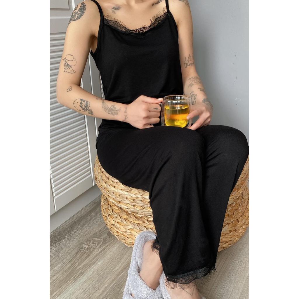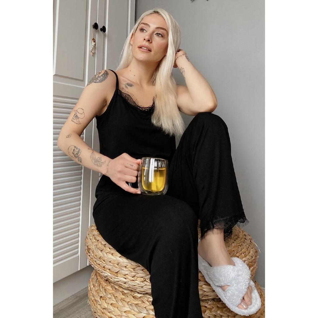 Женский черный вязаный пижамный комплект с кружевным ремешком