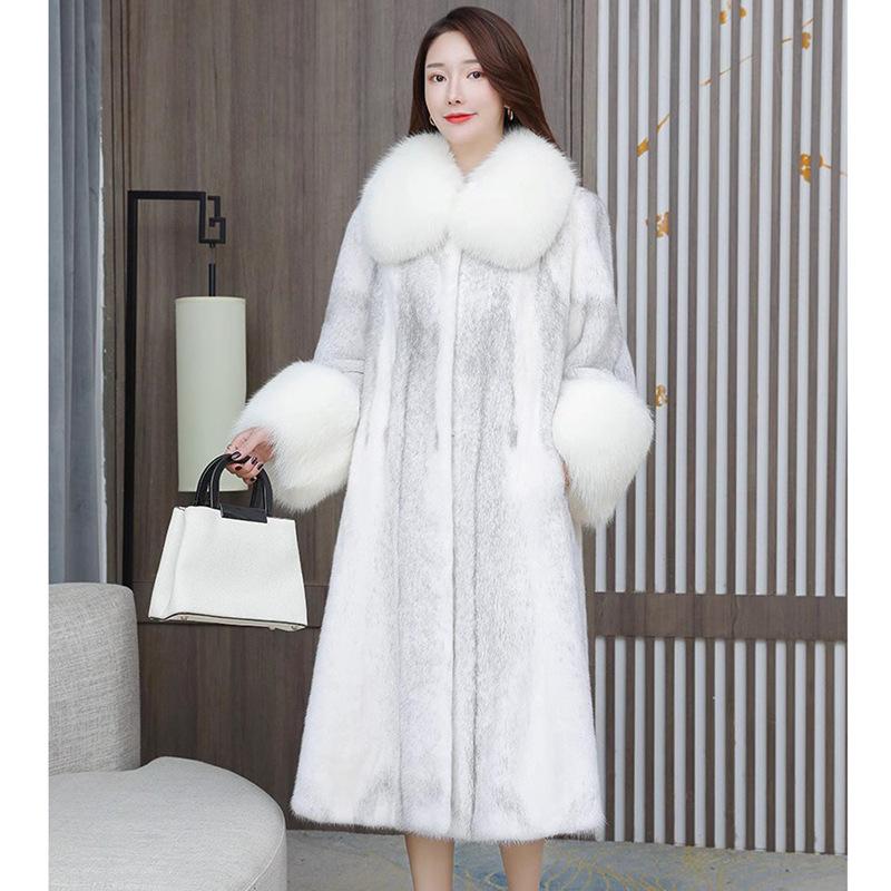 Женская одежда, пальто куницы, женская длинная шуба из цельной норки, теплая норковая зимняя новая зимняя шуба из лисьего меха с большим меховым воротником