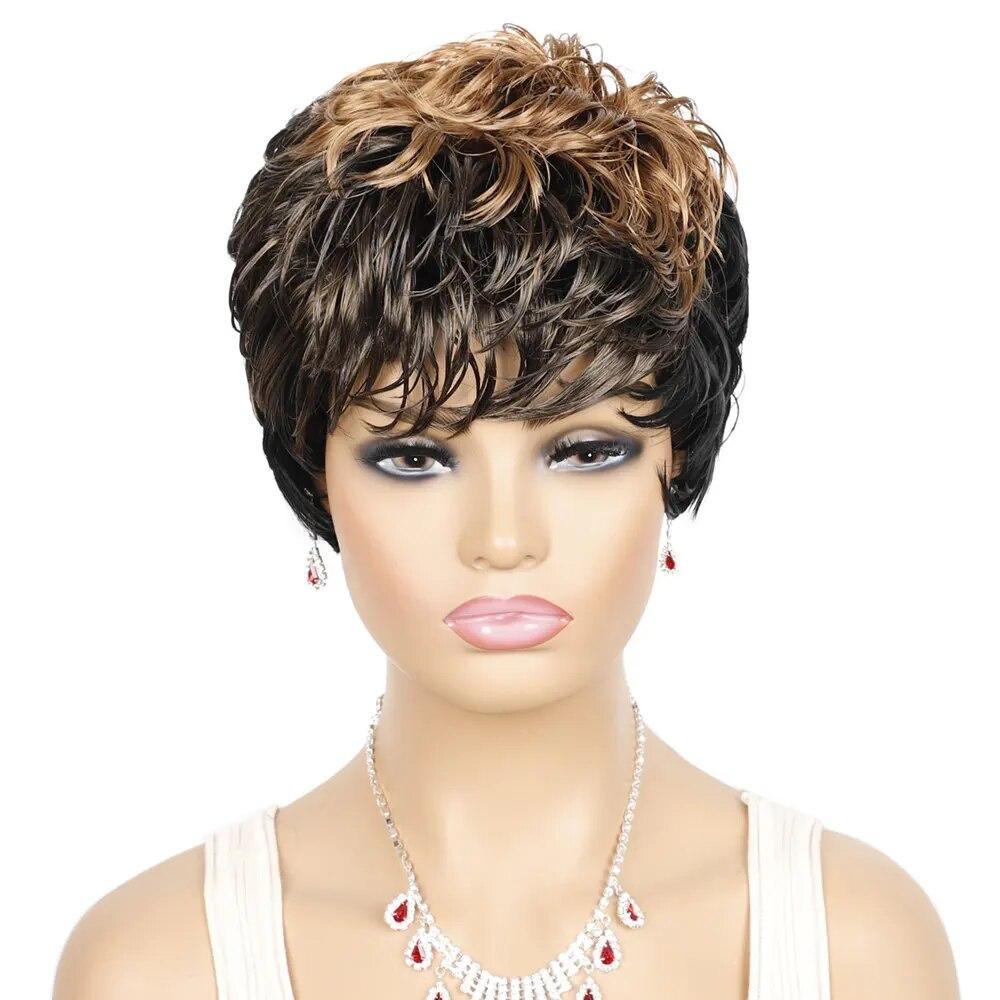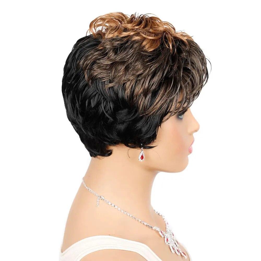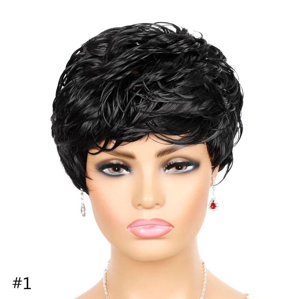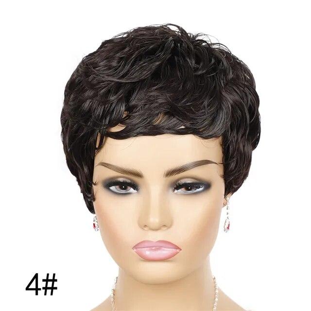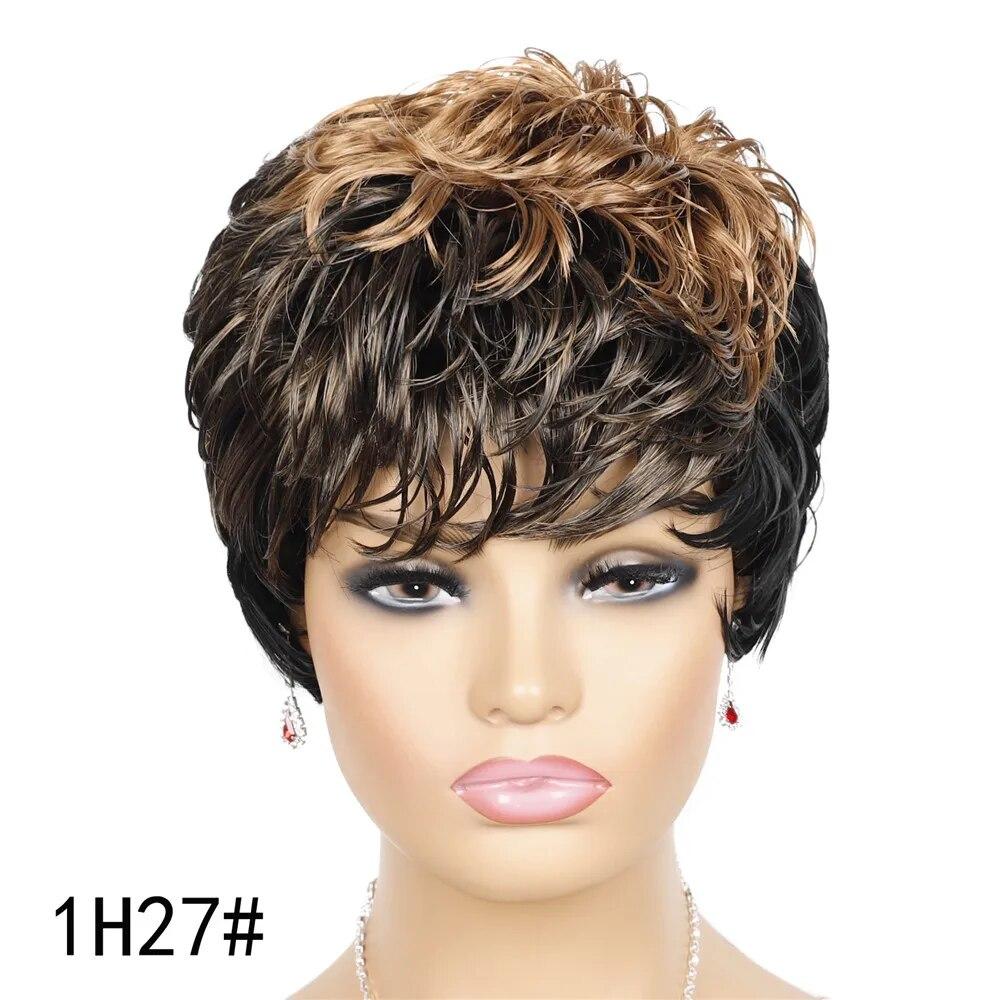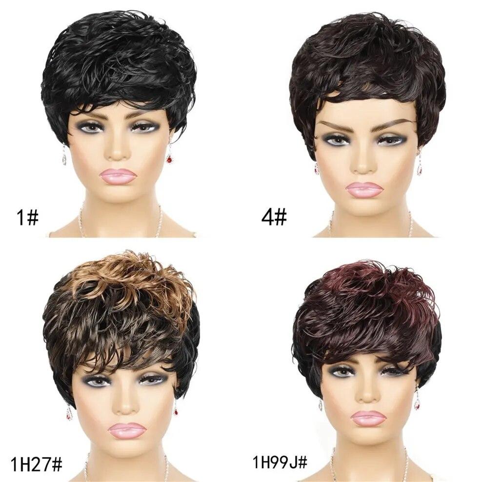 Короткие парики, женские натуральные волнистые парики из синтетических волос для женщин, черно-коричневый парик, женский парик с стрижкой пикси с челкой