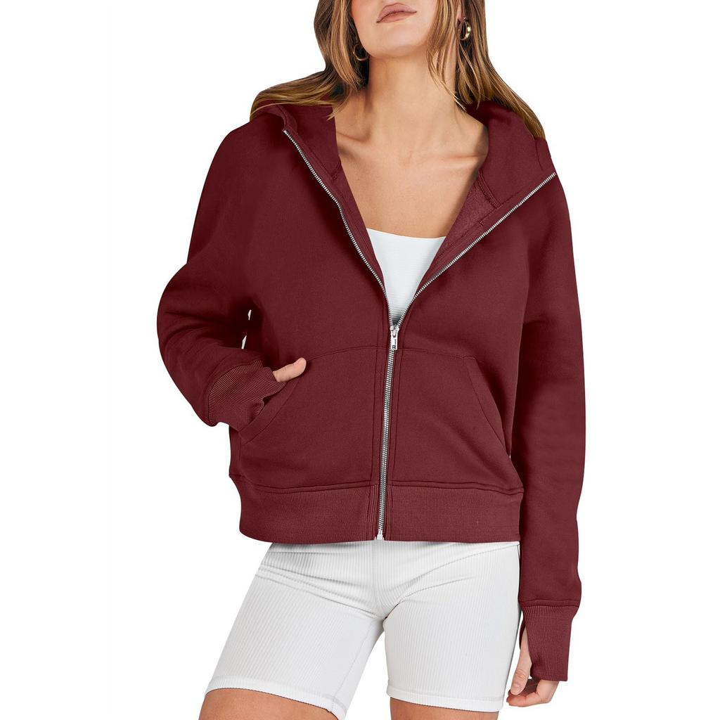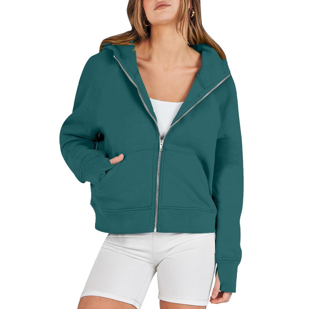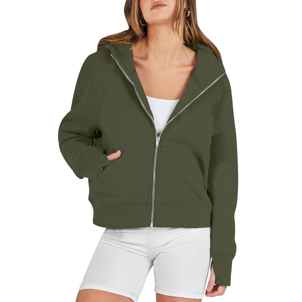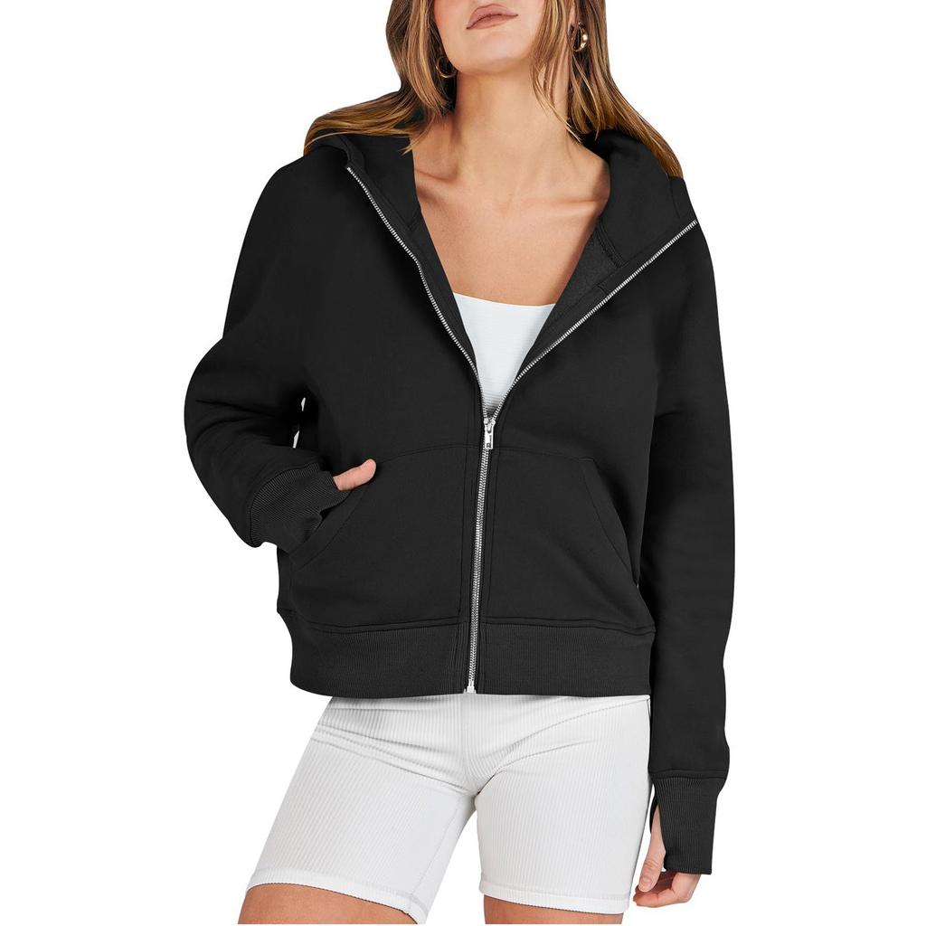 Женские толстовки с длинным рукавом, повседневные толстовки на молнии, толстовки с отверстиями для большого пальца, пальто, куртки с карманами